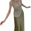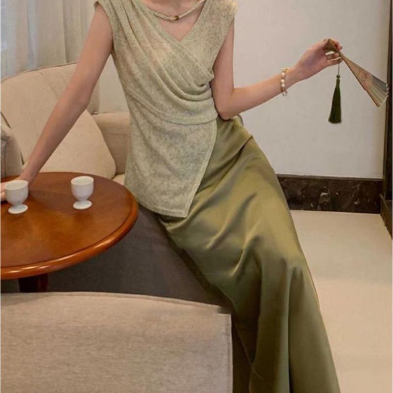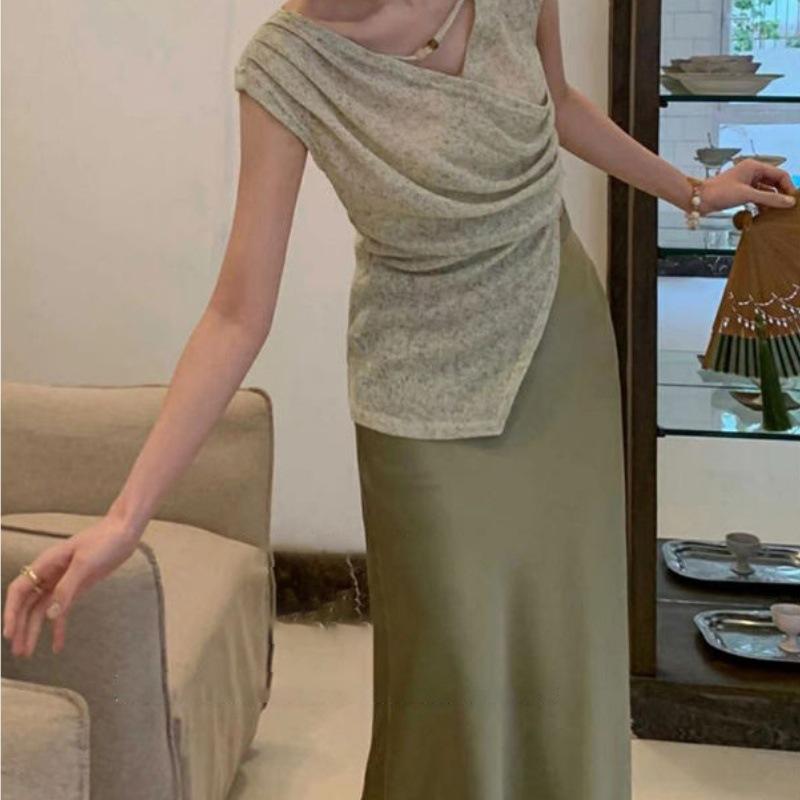 Conjunto Casual de Moda Feminina Verão 2025 Verão Novo Camisa Irregular + Saia Slim de Cintura Alta Conjunto de Duas Peças