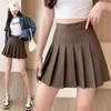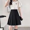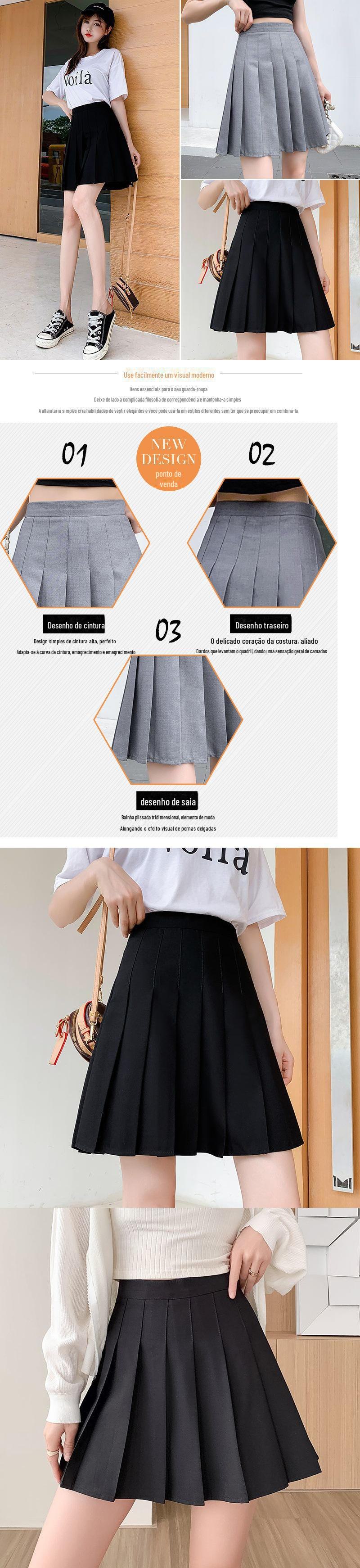 Saia branca média e longa plissada menina macia alta estilo coreano antirreflexo cintura alta meio-comprimento A- linha saia cor All-match estilo