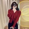 2024 outono e inverno novo estilo coreano doce idade-reduzindo renda boneca colarinho malha cardigan feminino guaxinim lã suéter casaco