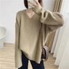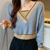 Outono novo solto preguiçoso estilo V-neck manga comprida suéter macio feminino estilo coreano fino malha base top