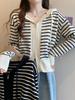 Duplo zíper exterior listrado suéter outono e inverno estilo coreano contraste cor capuz manga comprida fino emagrecimento top casaco pequeno