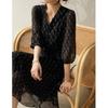 Saia Plissada de Seda com Bolinhas Vestido Elegante de Seda Pesada de Amora 2025 Verão Feminino Comprimento Médio Estilo Francês
