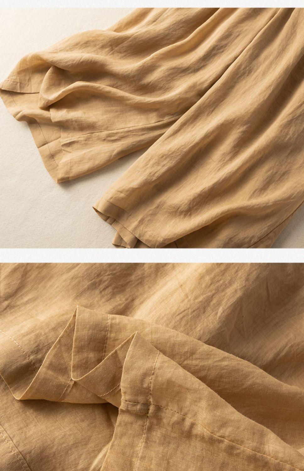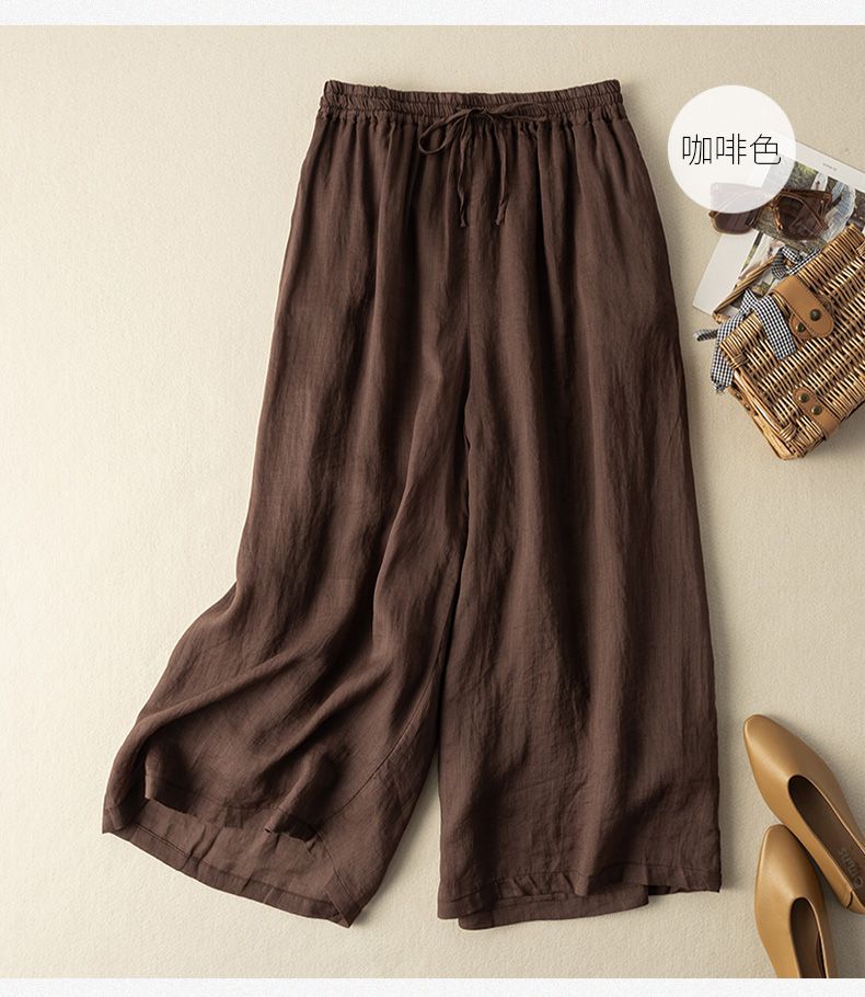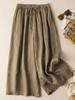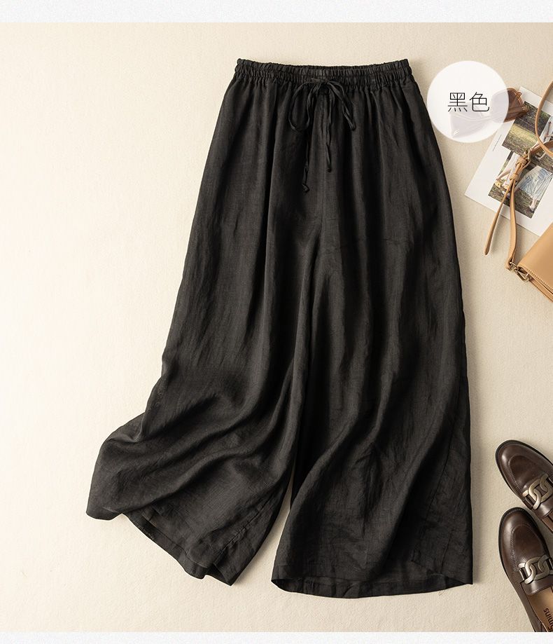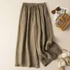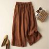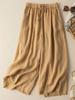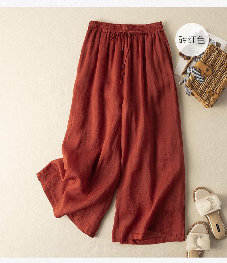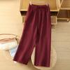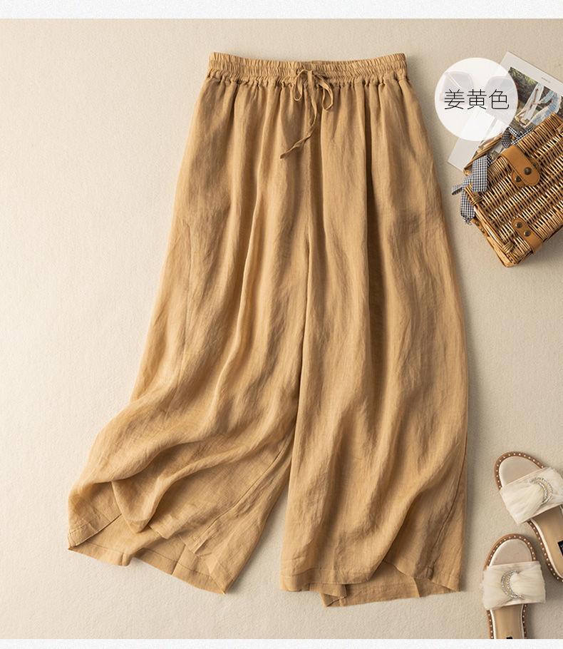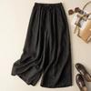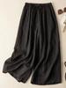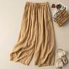 Calças Culotes Drapeadas de Algodão e Linho Nove Pontos 2025 Novas Calças de Verão para Mulheres Finas de Cintura Alta Respiráveis Casuais para Mulheres