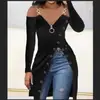 Compre 2023 Roupas femininas europeias e americanas outono e inverno cor sólida off-shoulder decote em V manga comprida linha de fenda alta zíper camiseta casual top no atacado no Joom.pro