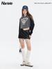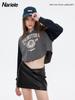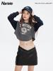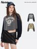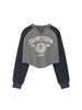 HeyHenry 2023 outono estilo preppy solto suéter curto estampado letras femininas manga comprida camiseta com decote em V