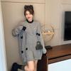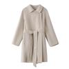 Casaco de caxemira para mulheres 100% pura caxemira Primavera e Outono novo mid-length terno gola casaco de malha casaco fivela casaco