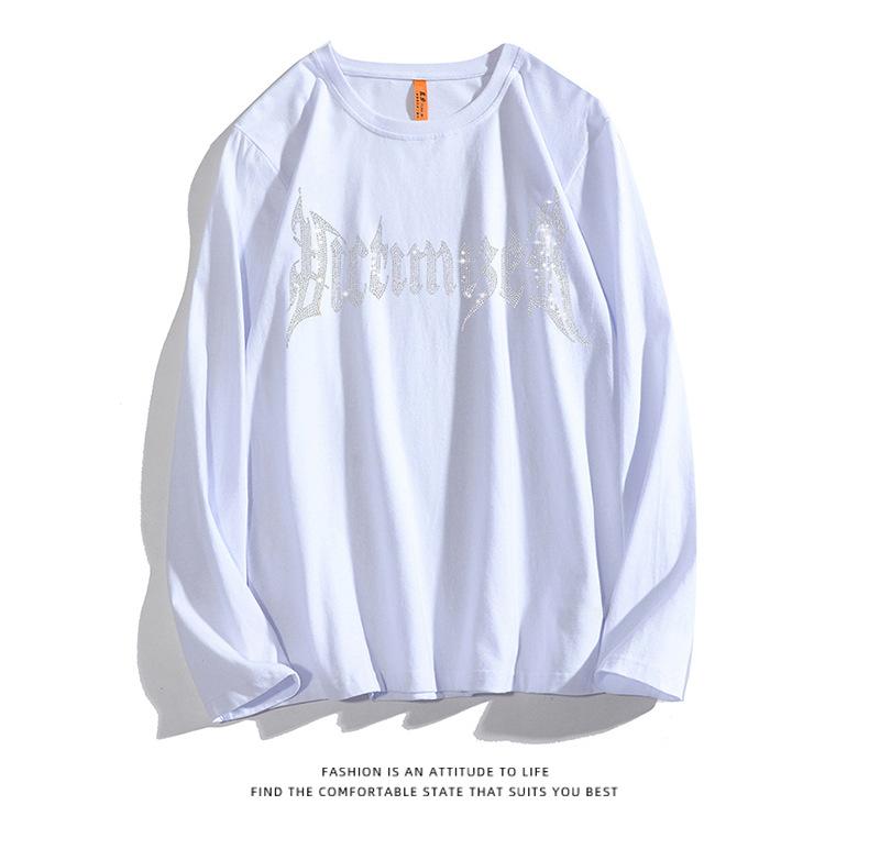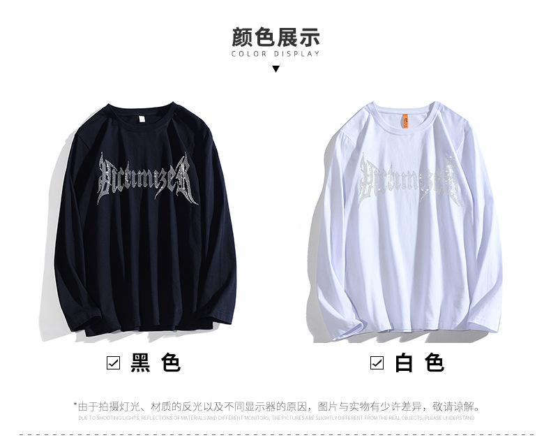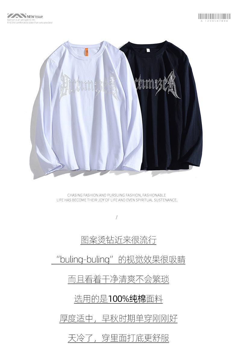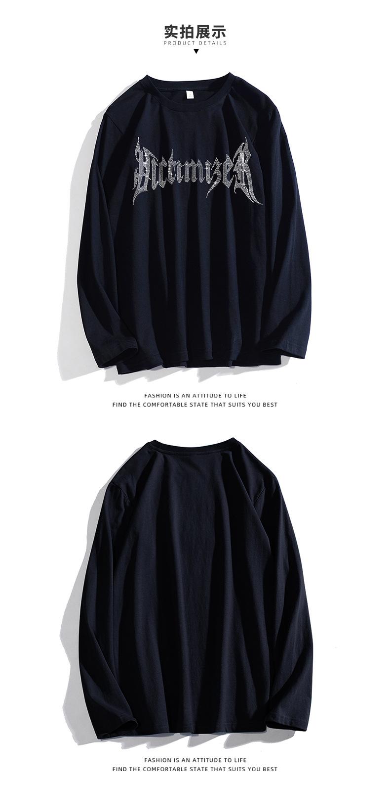 Xinjiang Camiseta de algodão de fibra longa, manga comprida, masculina, estilo europeu e americano, de rua, com perfuração quente, outono, com parte superior e parte inferior, camiseta pequena, roupas de marca da moda, interior