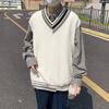 Preppy estilo V-neck colete de malha masculina primavera e outono marca de moda em empilhado colete colete versátil solto sem mangas suéter