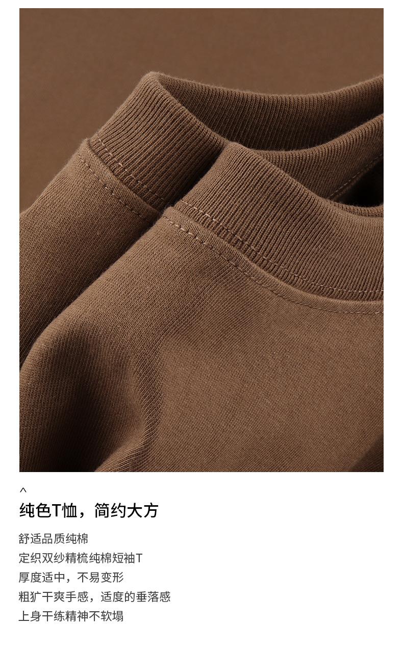 Americana 210g marrom pesado penteado algodão manga curta camiseta básica masculina e feminina pescoço redondo casal frouxo usar moda