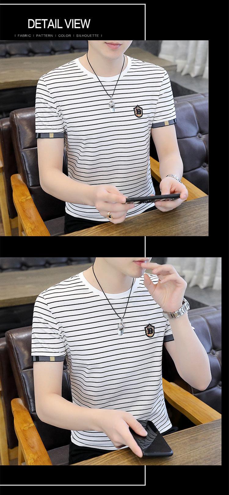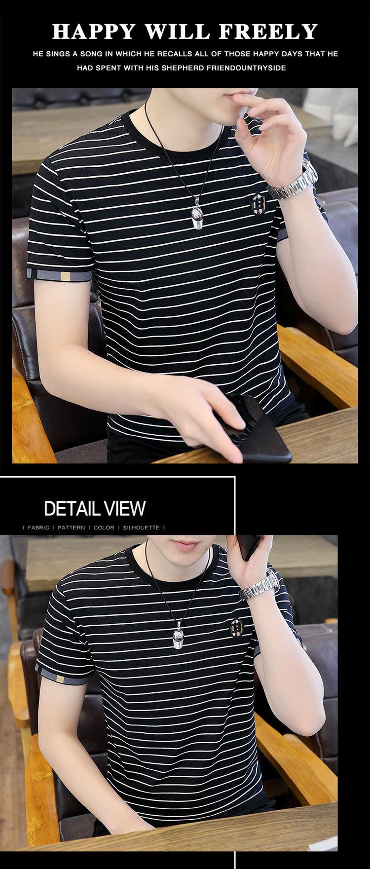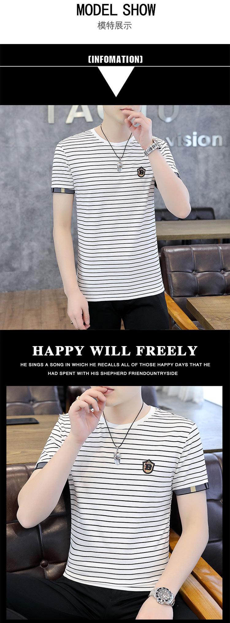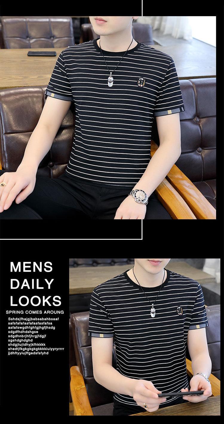 Verão Novo Masculino de manga curta Slim-fit Daily Round Neck Impresso Jovem Camiseta Masculina Simples Meia manga Cor Sólida Masculino