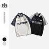 OLDTRIBE - Camiseta estilo universitario juvenil estilo americano con solapa, holgada, manga corta, estilo polo, PL04
