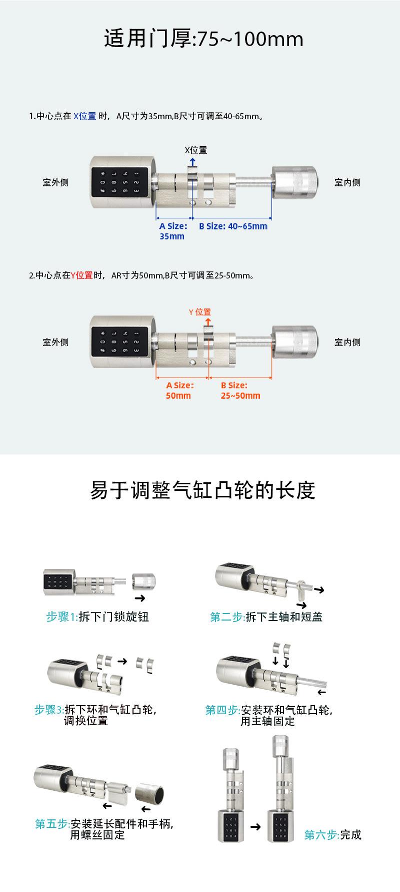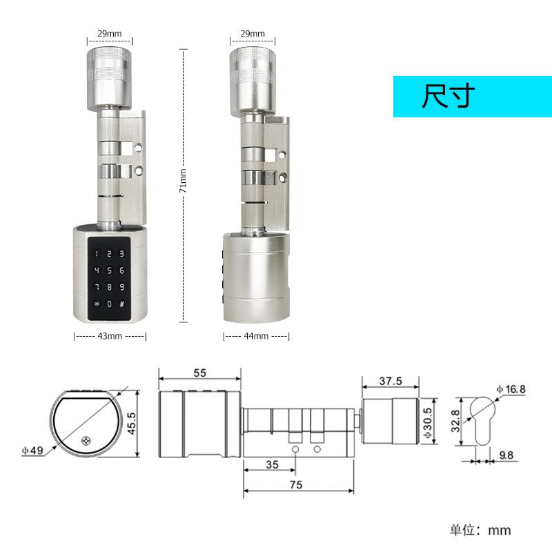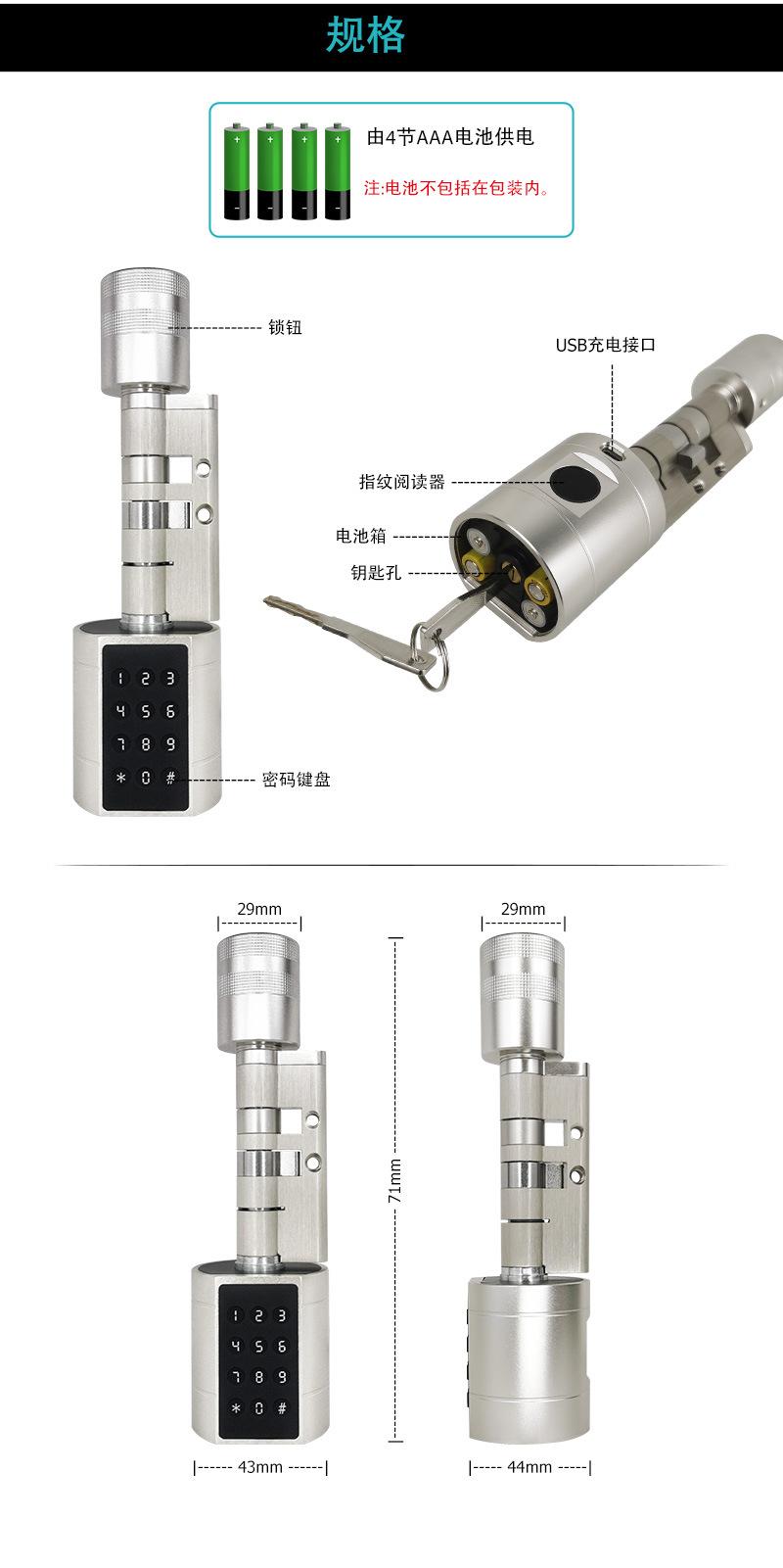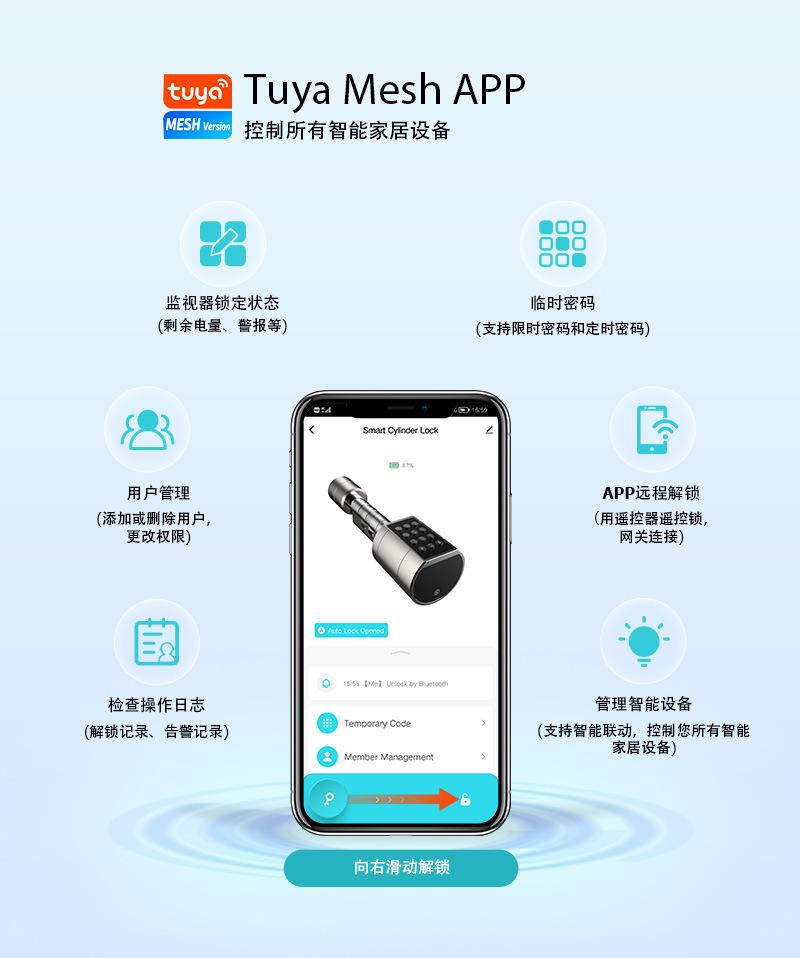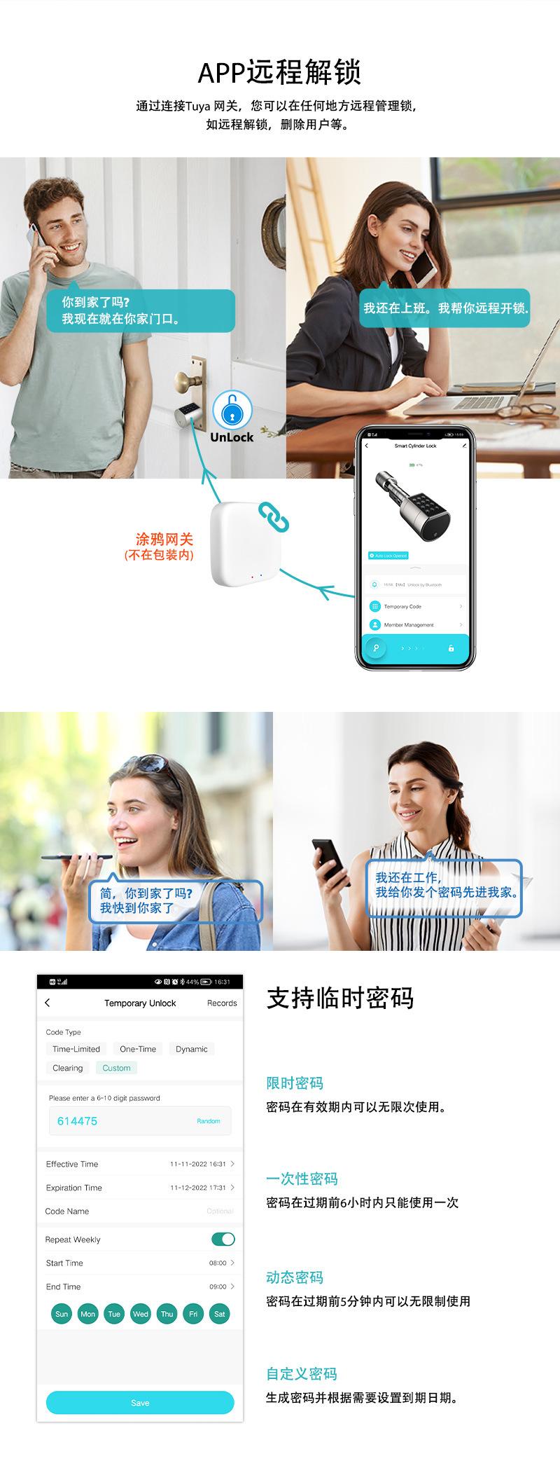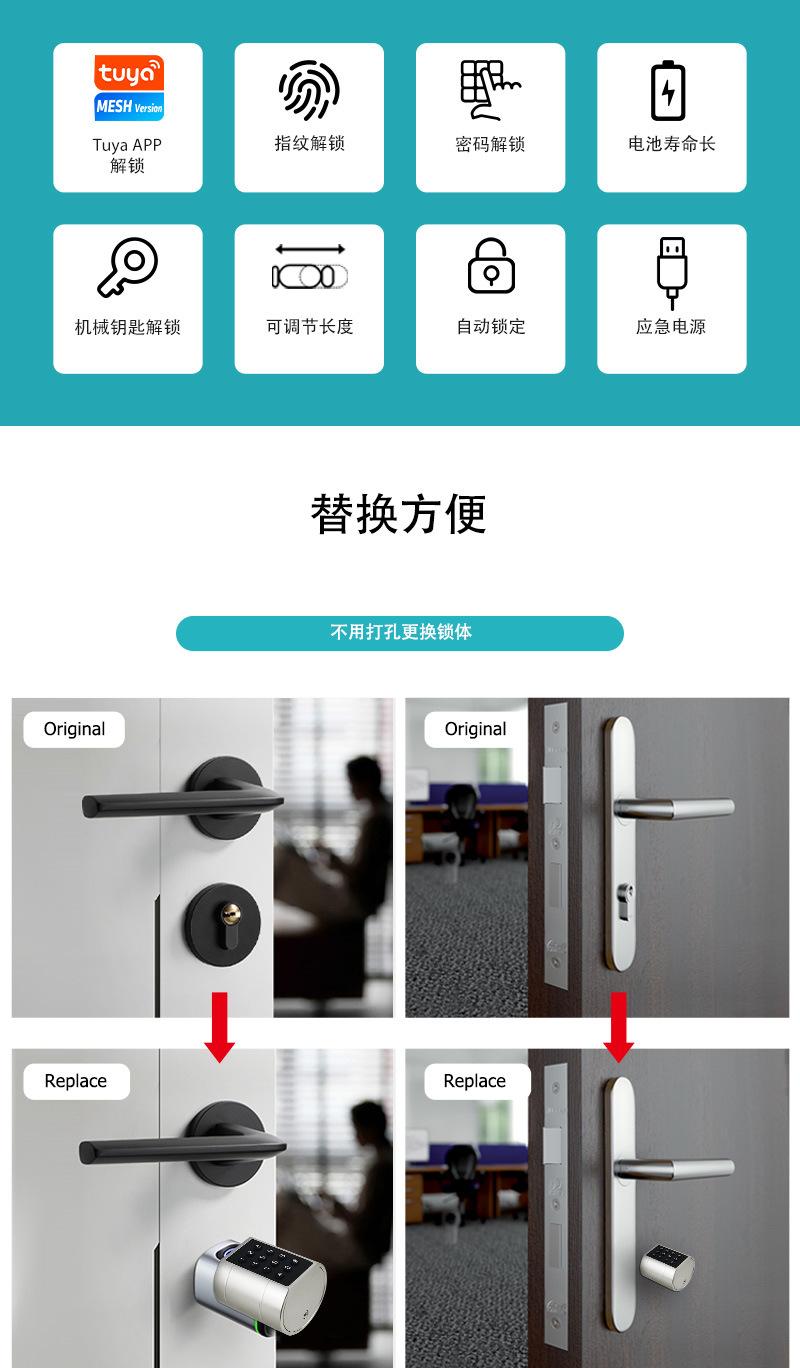 Venda quente transfronteiriça inteligente graffiti APP cilindro de bloqueio ajustável vários métodos de desbloqueio bloqueio de senha de impressão digital