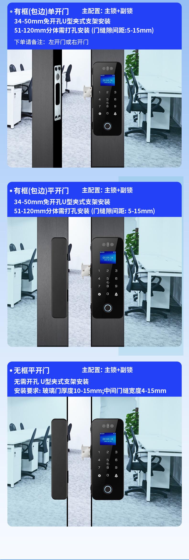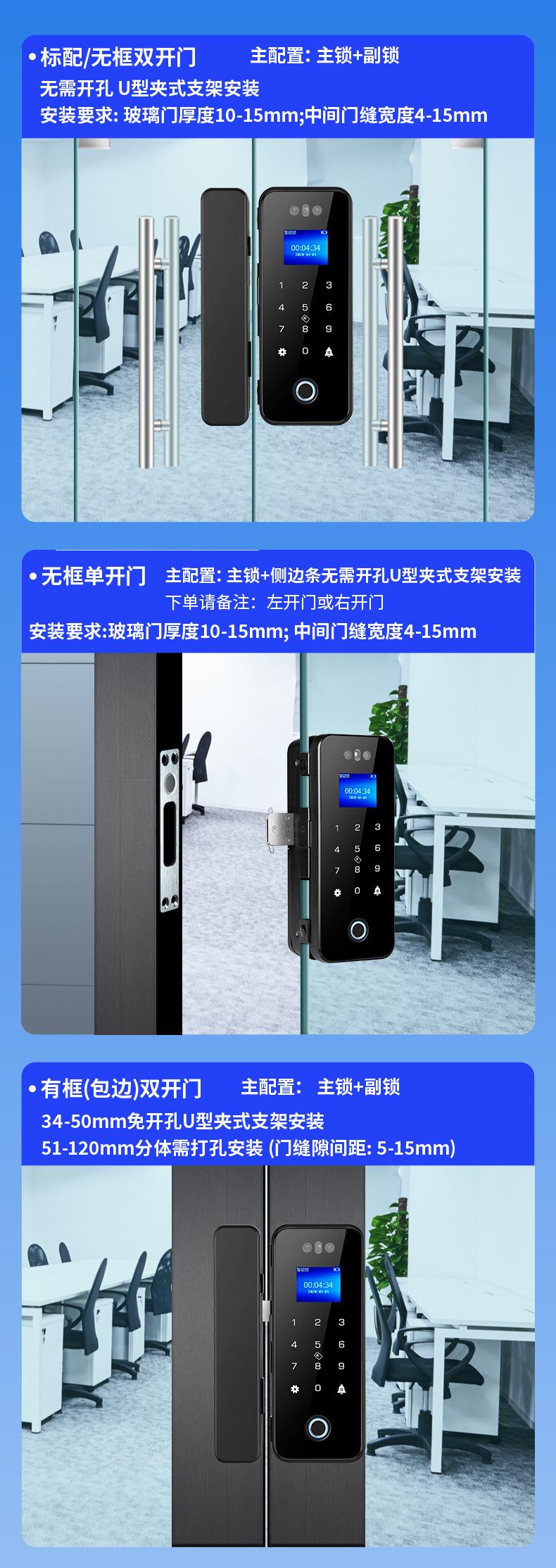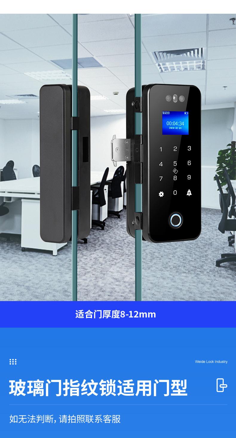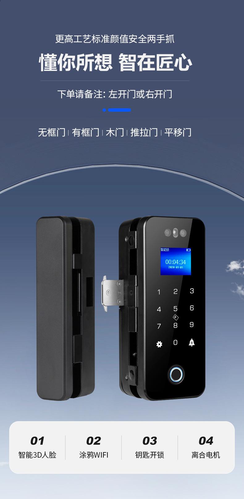 Reconhecimento Facial 3D Porta de Vidro Fechadura de Senha por Impressão Digital Escritório Tipo Dividido Fechadura Inteligente Porta Dupla Sem Moldura Abertura Dupla