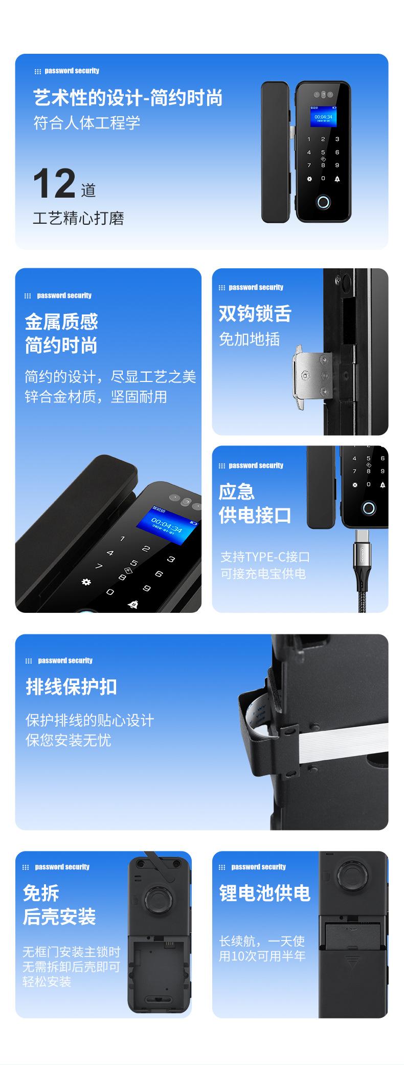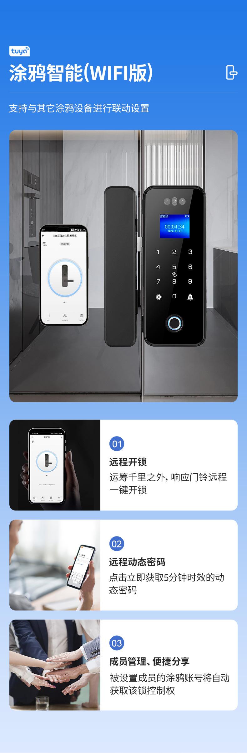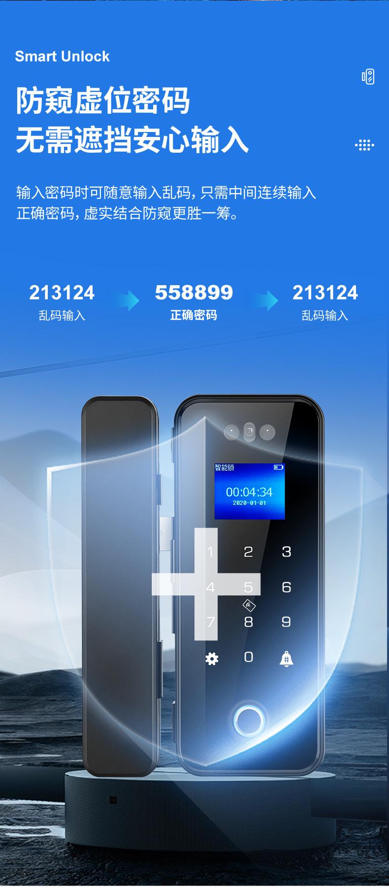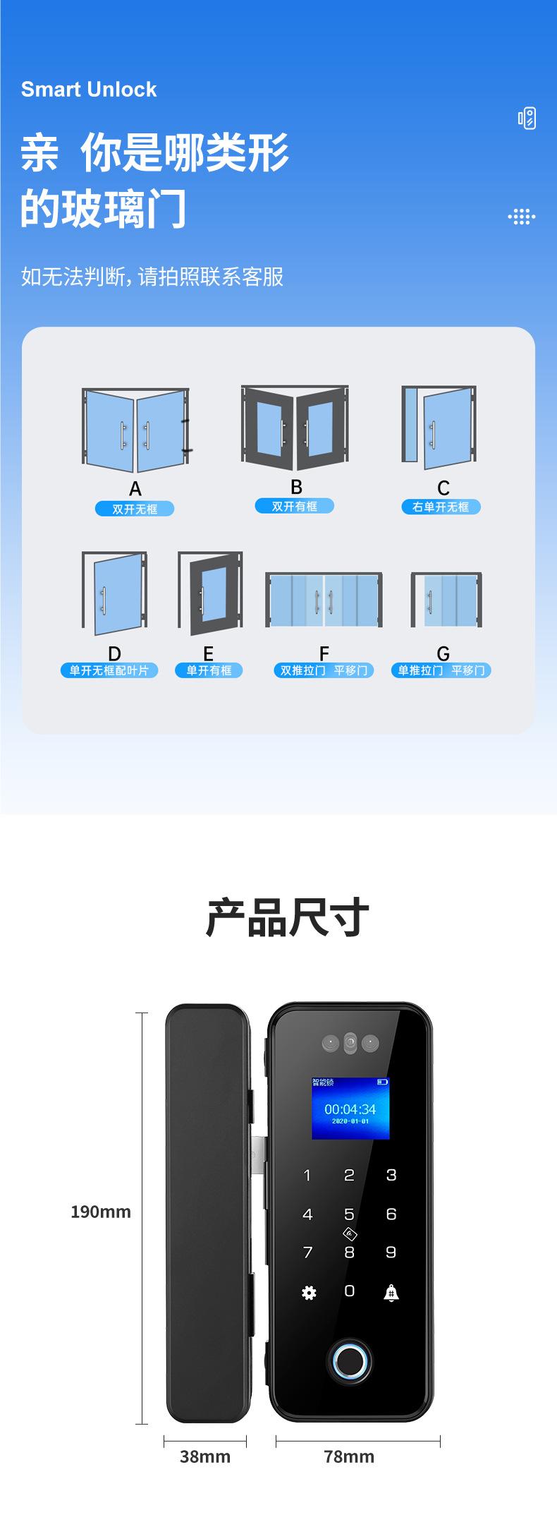 Reconhecimento Facial 3D Porta de Vidro Fechadura de Senha por Impressão Digital Escritório Tipo Dividido Fechadura Inteligente Porta Dupla Sem Moldura Abertura Dupla
