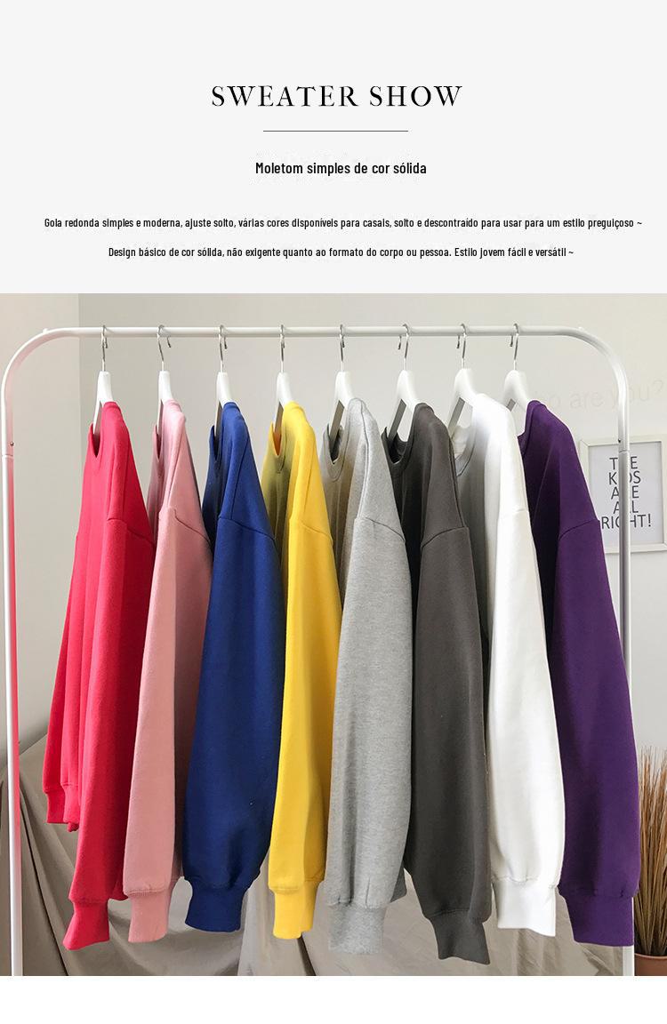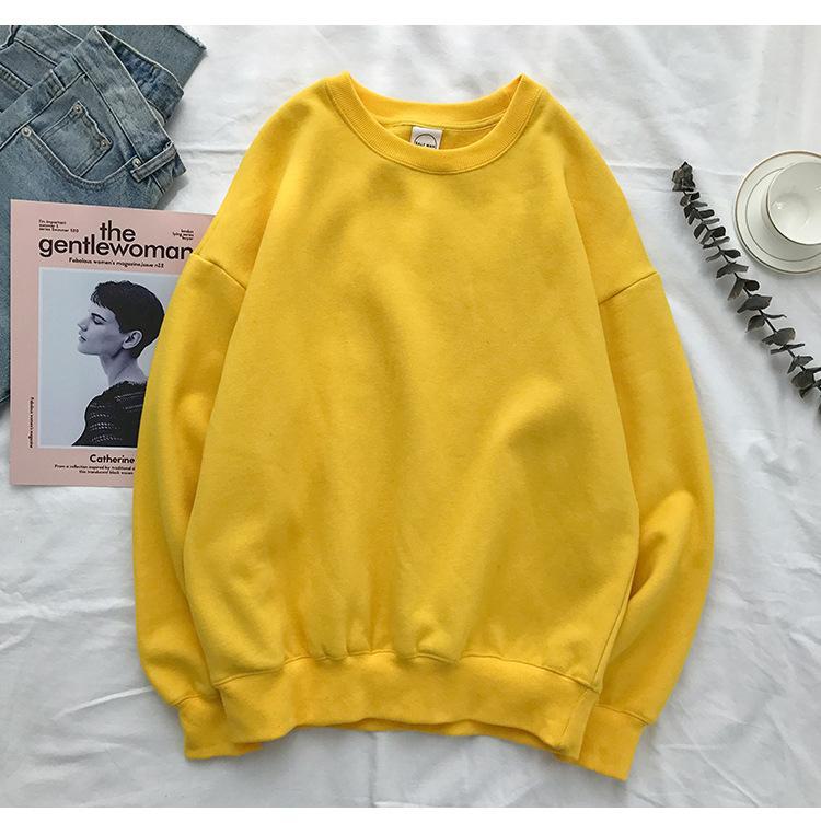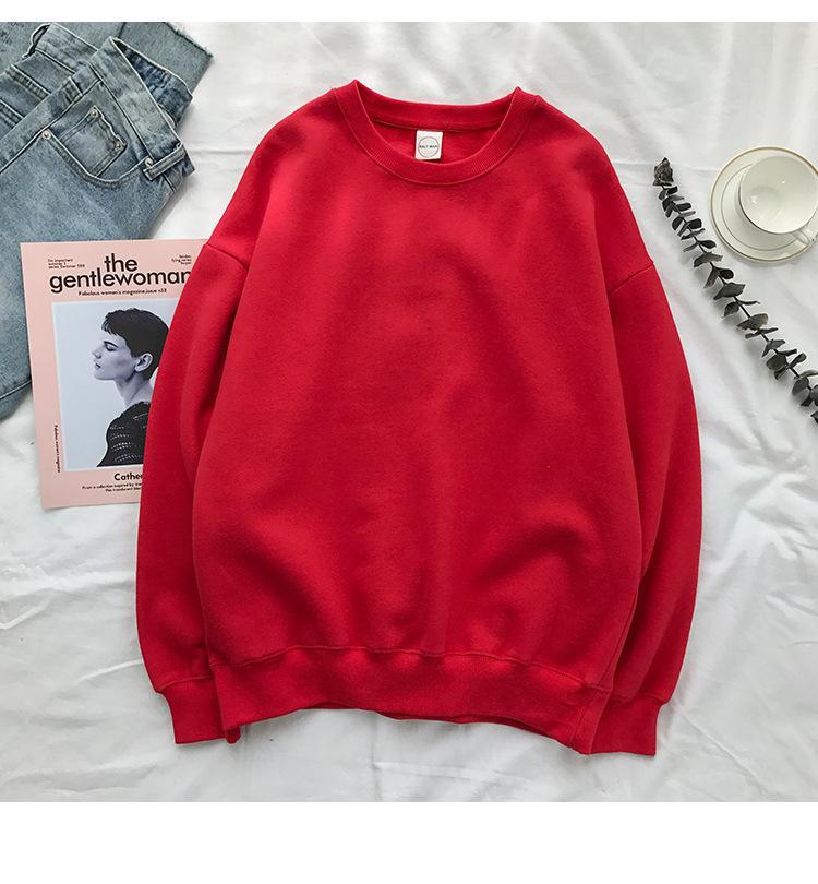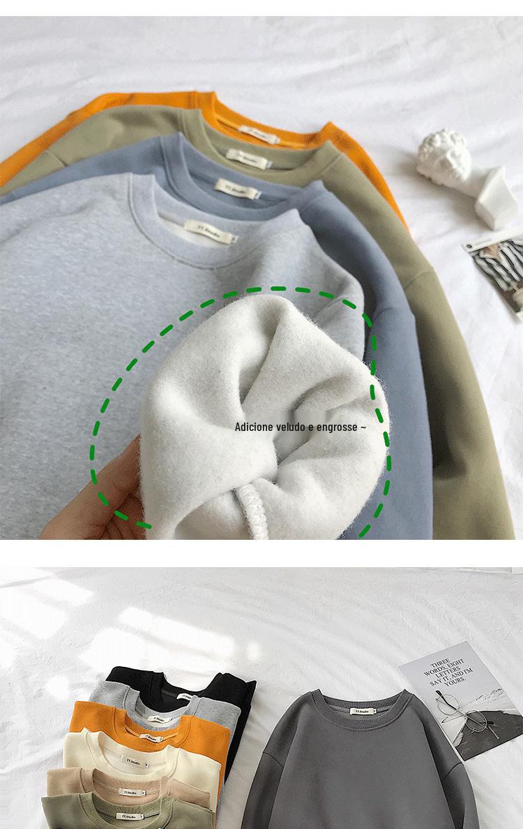[Moletom de Veludo 24 Cores] Peça Única Pronta para Uso Transfronteiriça Feminina Novo Gola Redonda Espessado Estudante Cor Pura Top