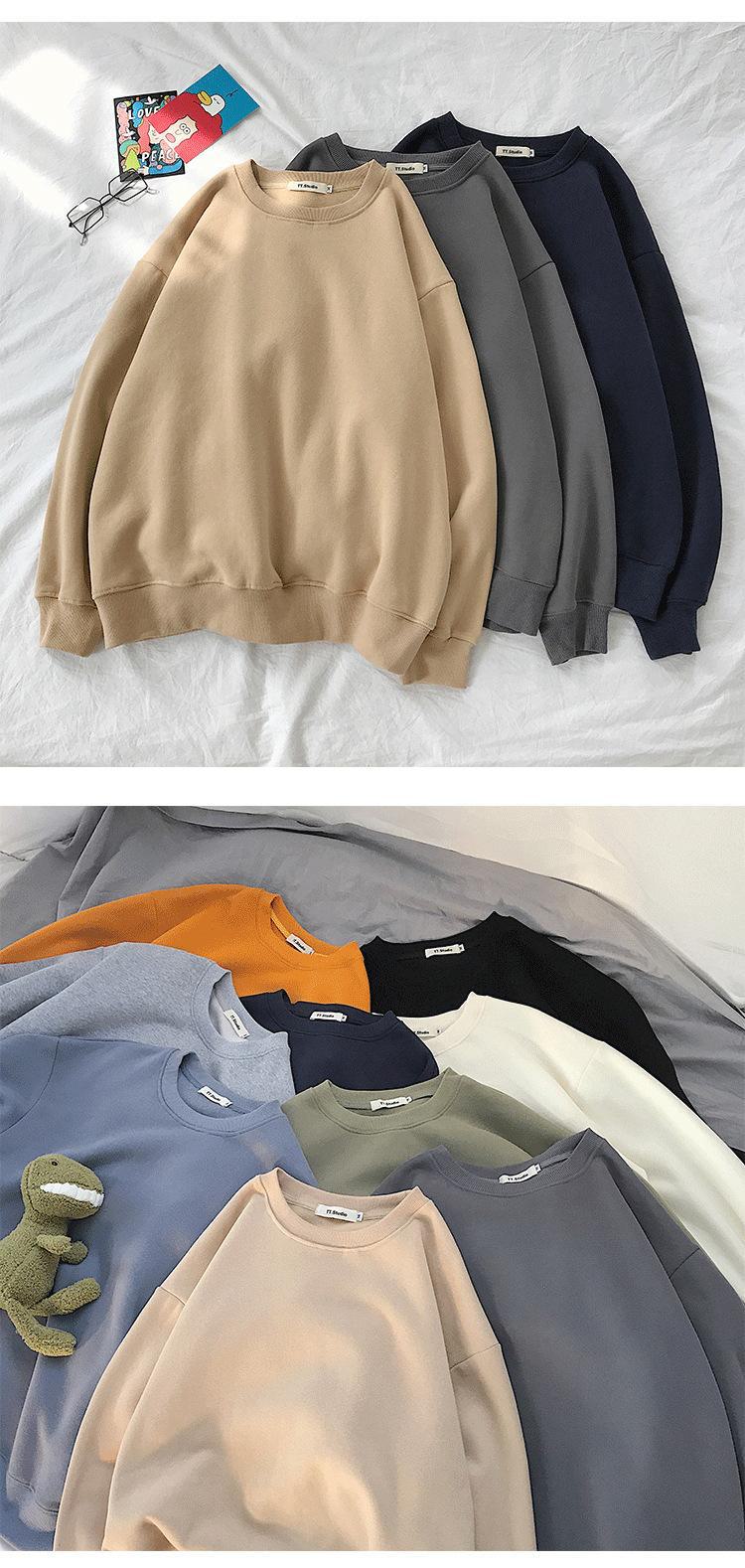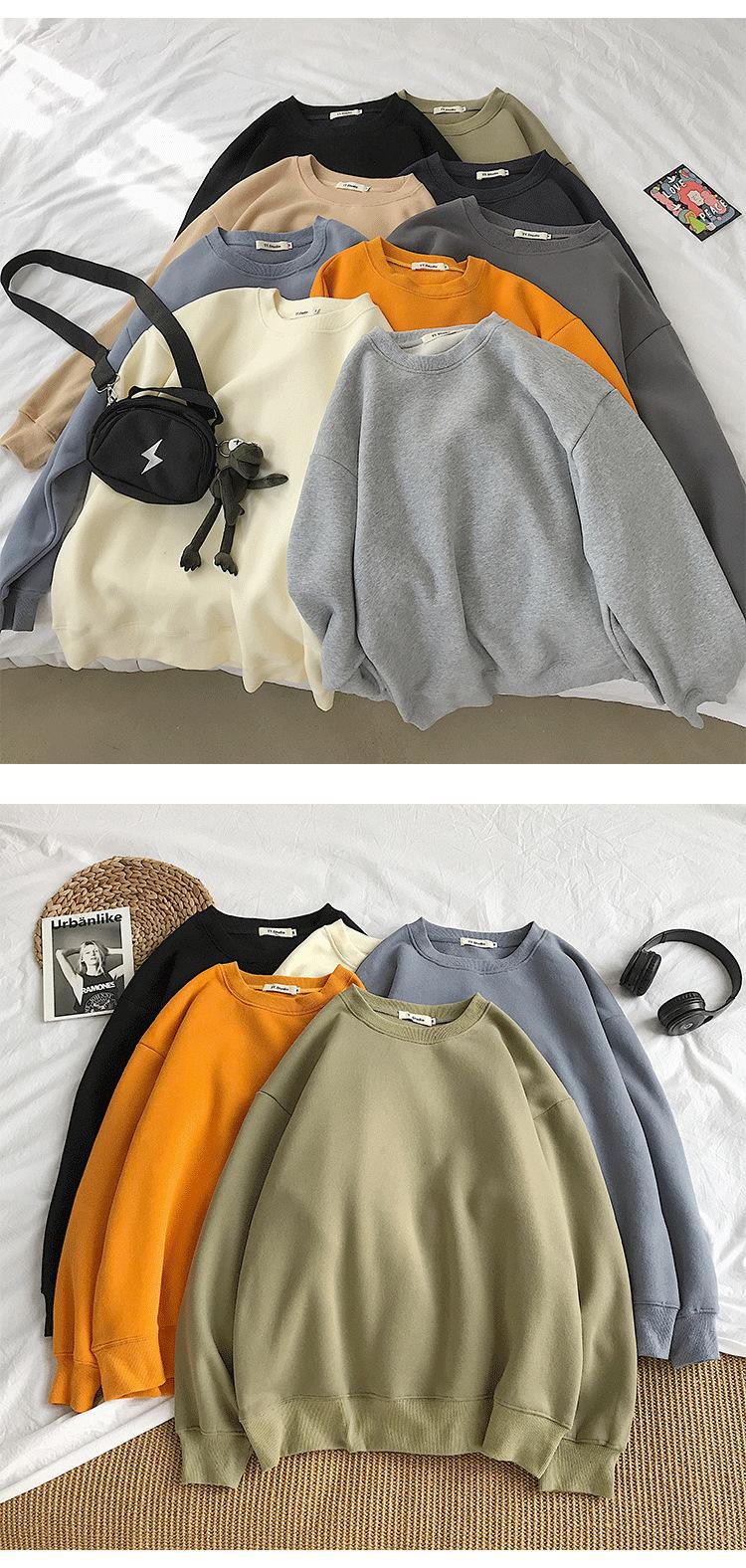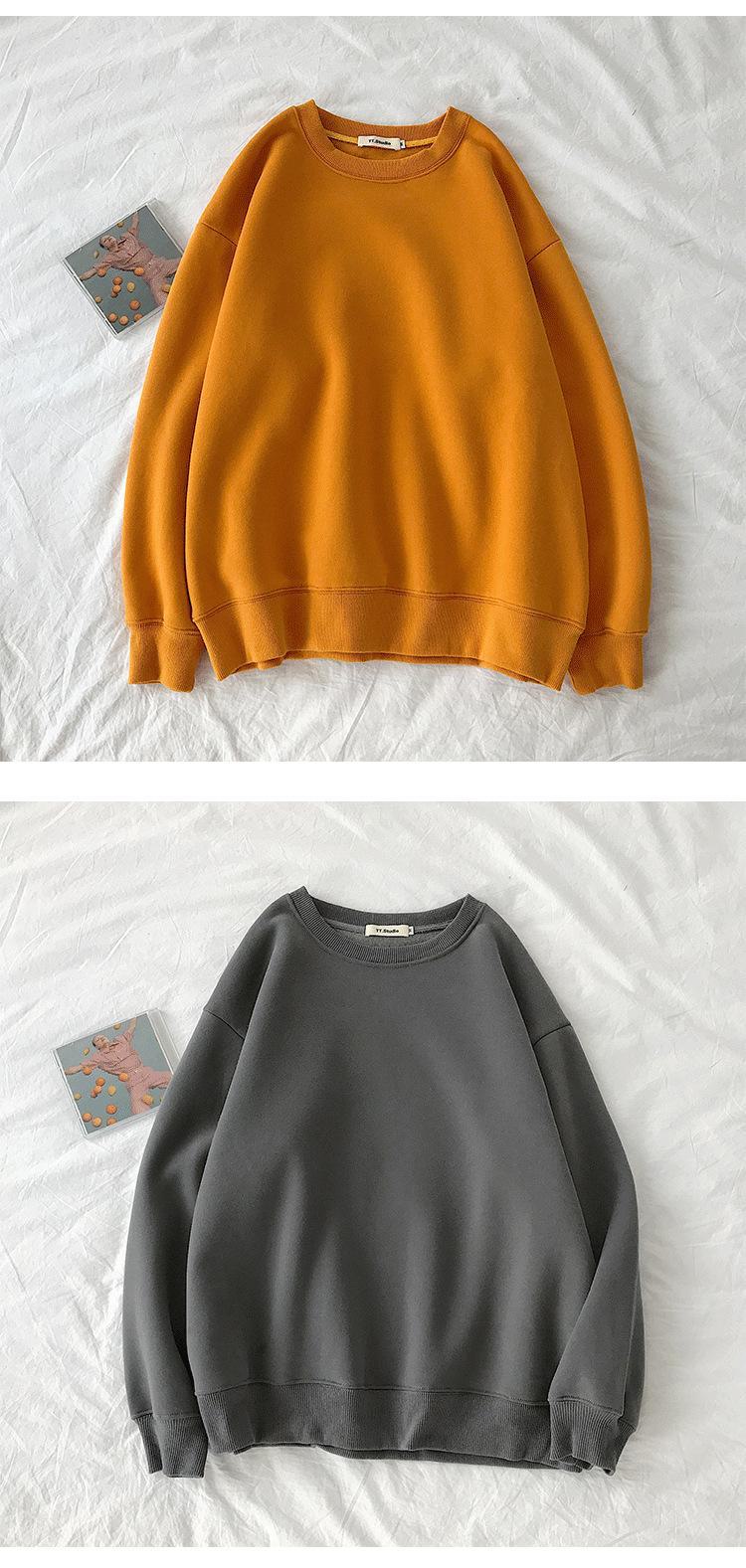 [Moletom de Veludo 24 Cores] Peça Única Pronta para Uso Transfronteiriça Feminina Novo Gola Redonda Espessado Estudante Cor Pura Top