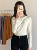2025 Outono e Inverno Básico Cor Pura Mangas Raglan Design Gola Redonda Nicho Camiseta de Manga Comprida para Mulheres