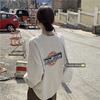 Jaqueta Moletom Fina de Manga Comprida com Estampa de Letras 2025 Novo Outono Feminino Solto Comprimento Médio Pulôver Top Tendência