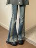 Jeans retrô queimado Americano retro costura micro flared jeans feminino cintura alta emagrecimento ferradura esfregar calças