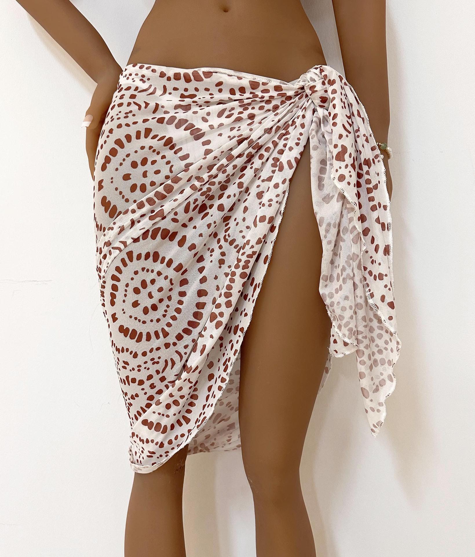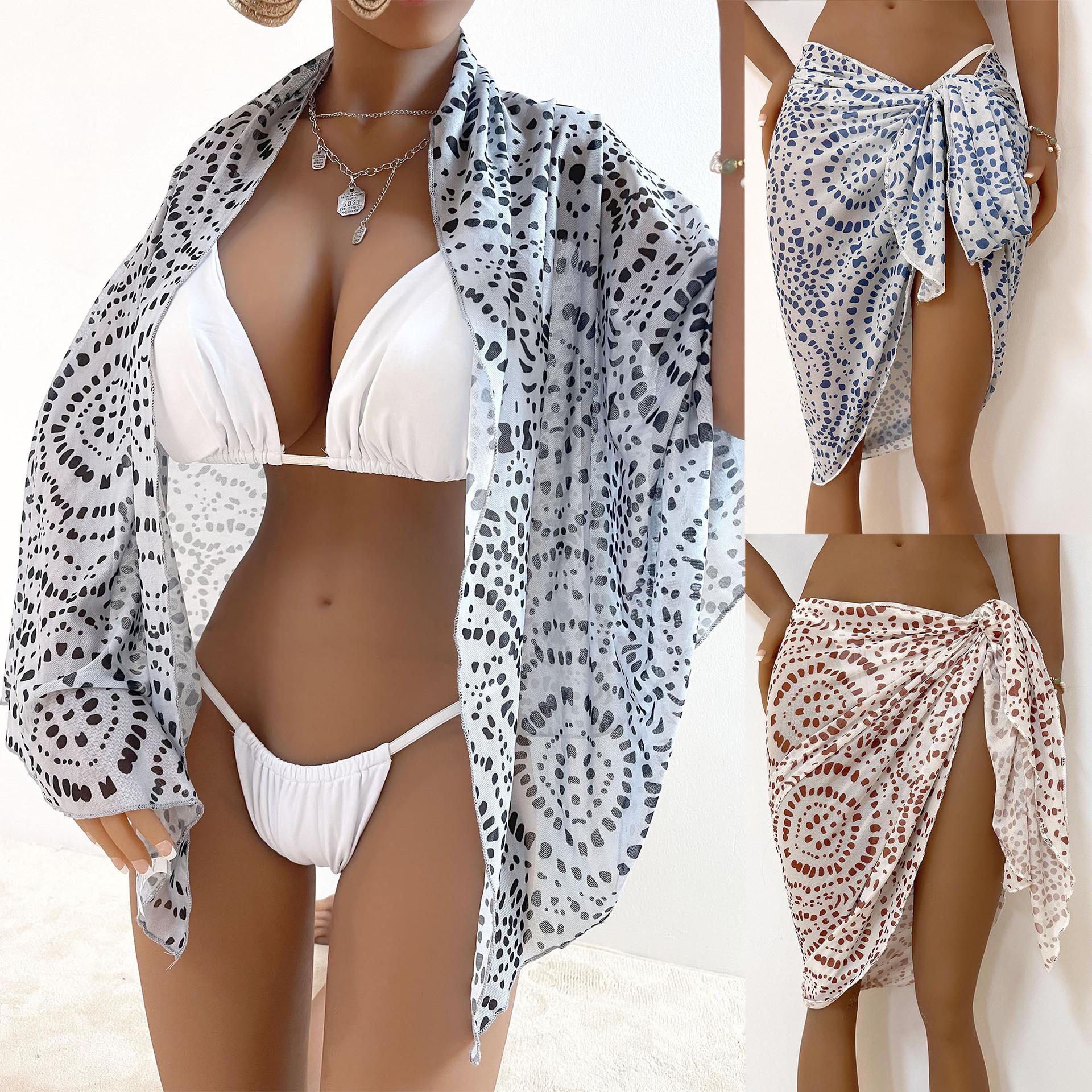 Xale Feminino Transfronteiriço Moda Europeia e Americana Estilo Férias Estampa de Bolinhas Irregular Uma Peça Amarração Saia de Praia