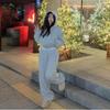 Conjunto de Duas Peças de Suéter Fino e Calças de Novo Estilo Coreano da Moda Outono e Inverno 2025 Solto com Capuz Casual Esportivo Feminino Tendência