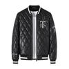 Abrigo de algodón con cuello de béisbol y rombos para hombre, estilo coreano, ajustado, bordado, para jóvenes, de PU, para invierno