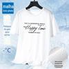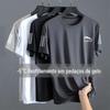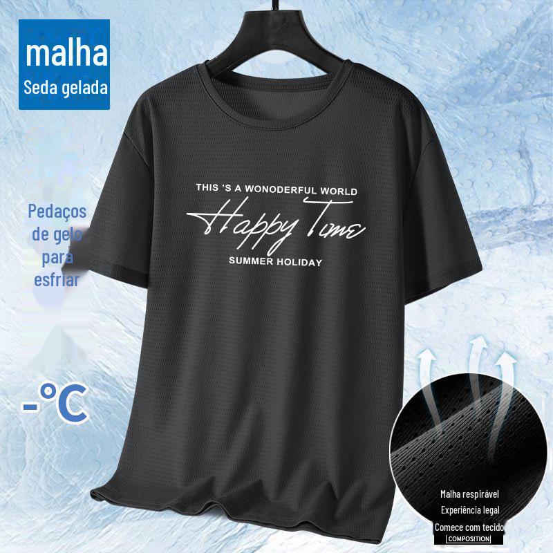 Camiseta de Verão 2025 Mesh Seda Gelo Estampada Slim Fina Gola Redonda Secagem Rápida Manga Curta Estilo Esportivo Masculino Tendência