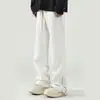 Estilo High Street Americano Primavera e Verão Calças Casuais com Zíper Marca Nova Tendência Slim Fit Calças de Moletom Pesado Cor Sólida Masculina Calças de Perna Reta Flare