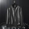 Forrado com fleece Engrossado Roupas de Couro Masculinas Estilo Coreano Tendência Jaqueta PU Casual Bonito Primavera e Outono Gola Cor Sólida Carteira