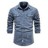 2024 Outono e Inverno de Comércio Exterior Transfronteiriço Tamanho Europeu Masculino Camisa Jeans Lavada Vintage Manga Longa Retro Gola Reversível