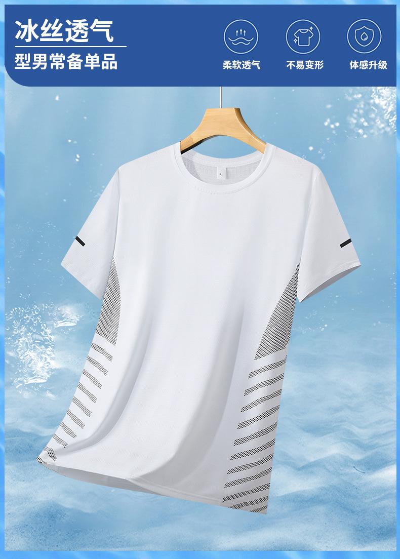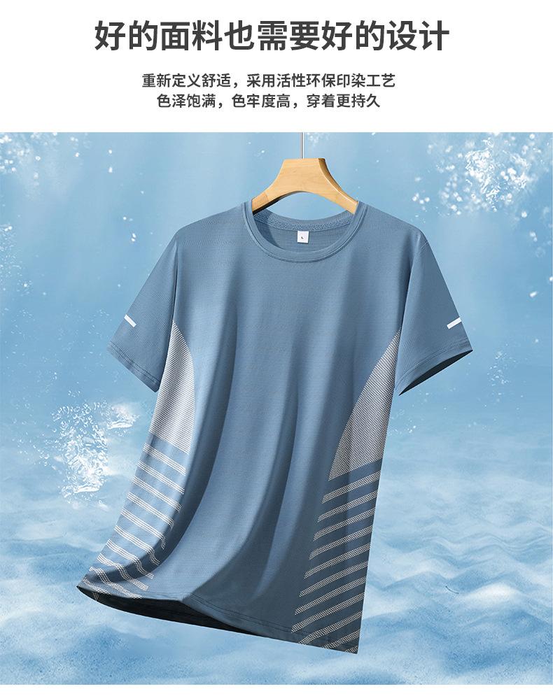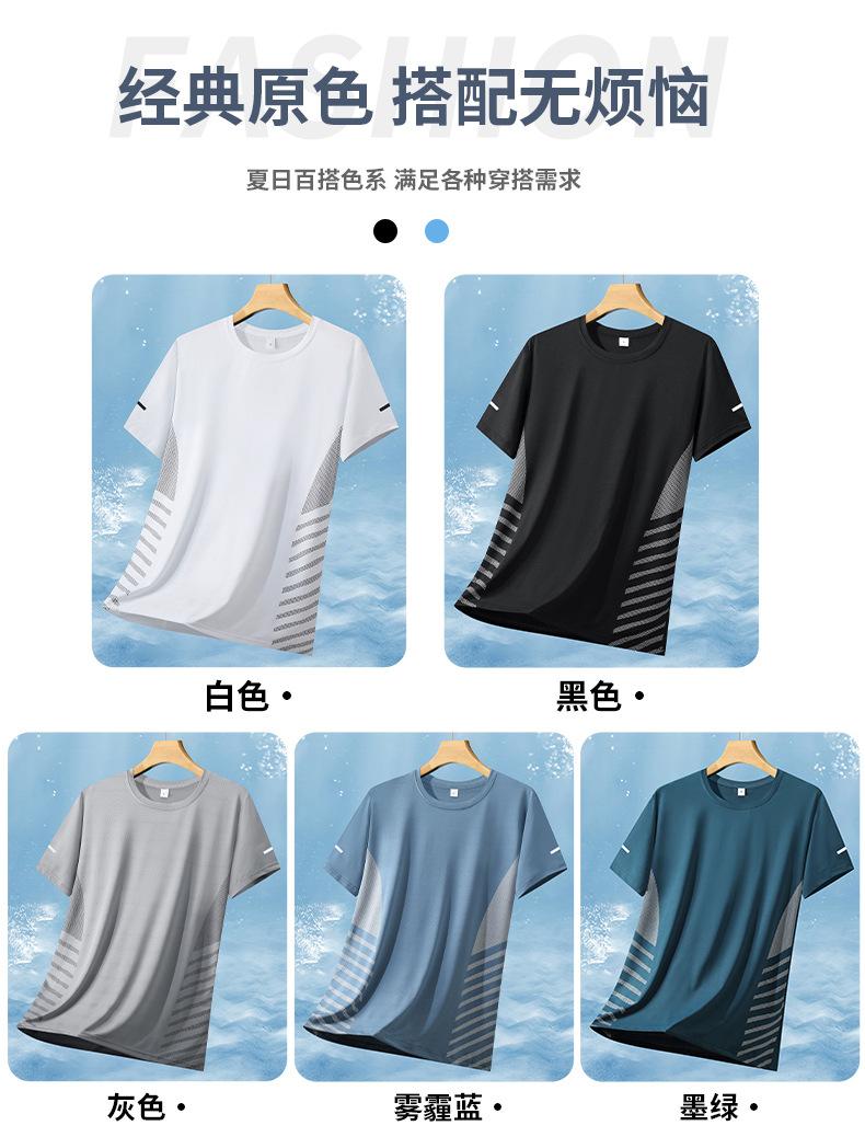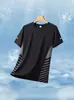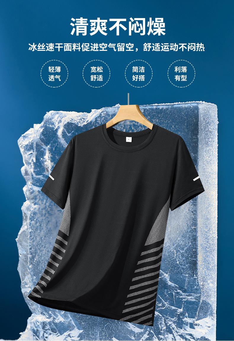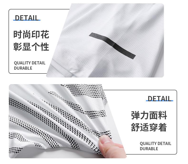 Camiseta de Verão Estampada de Seda Gelo para Homens, Esportiva Casual para Corrida Fitness Respirável Manga Curta Roupa Masculina para Exterior Secagem Rápida Marca Tendência