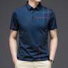 Verão Novo Lar Masculino Camiseta de manga curta Camisa Polo Listrada de Nylon Masculina de Meia-idade Camiseta Top Casual de Negócios