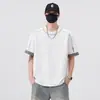 Camiseta de Algodão de Manga Curta para Homens, Novo Estilo de Verão, Patchwork Xadrez Falso de Duas Peças Tendência, Solta, Confortável, Fresca e Versátil