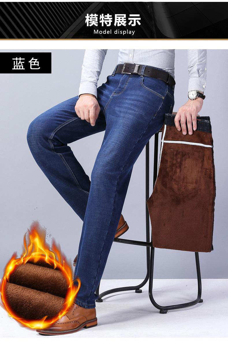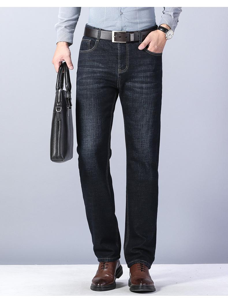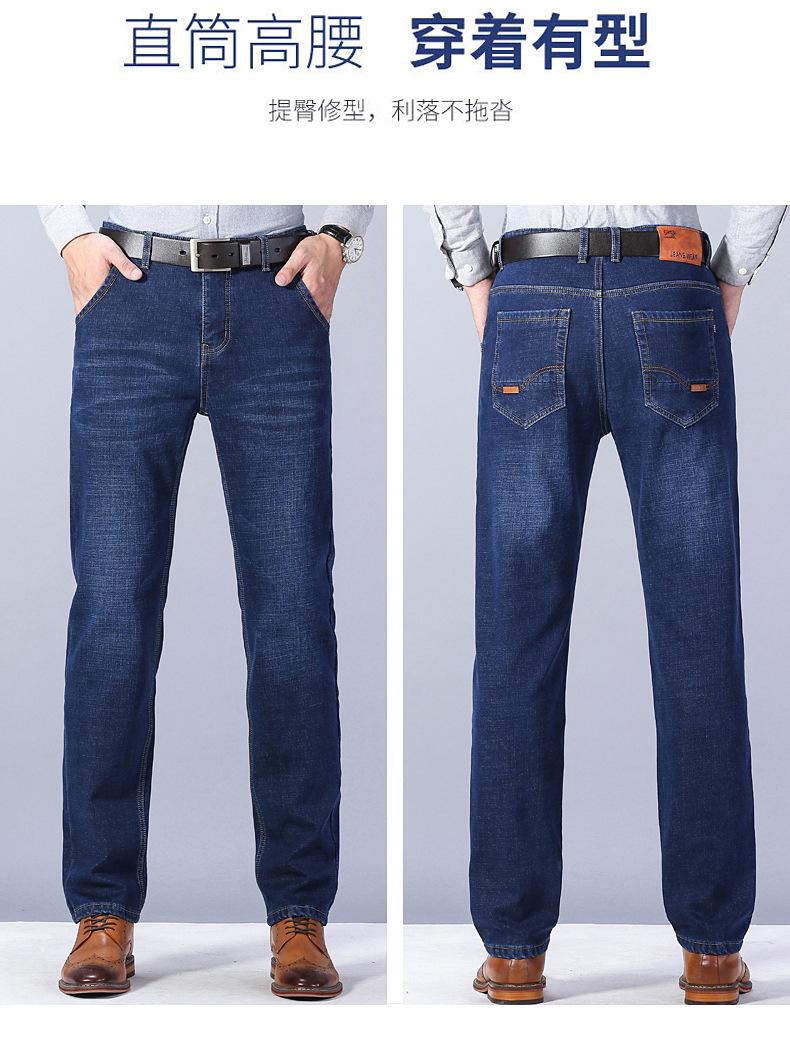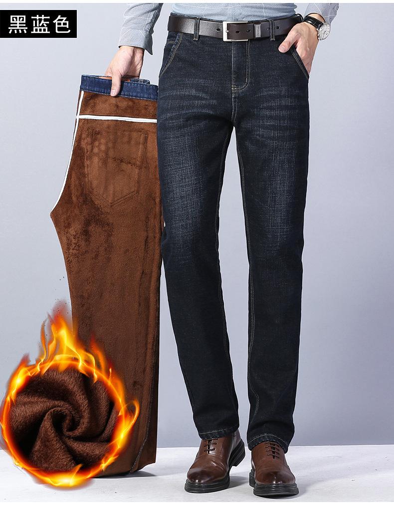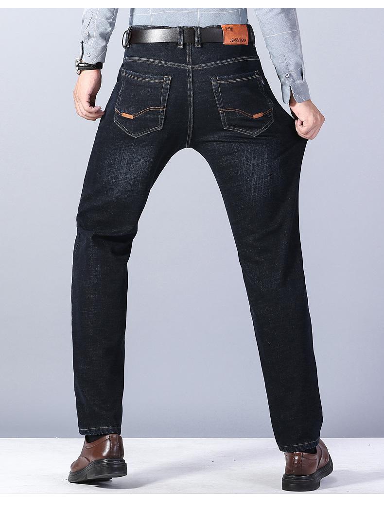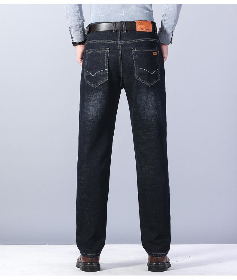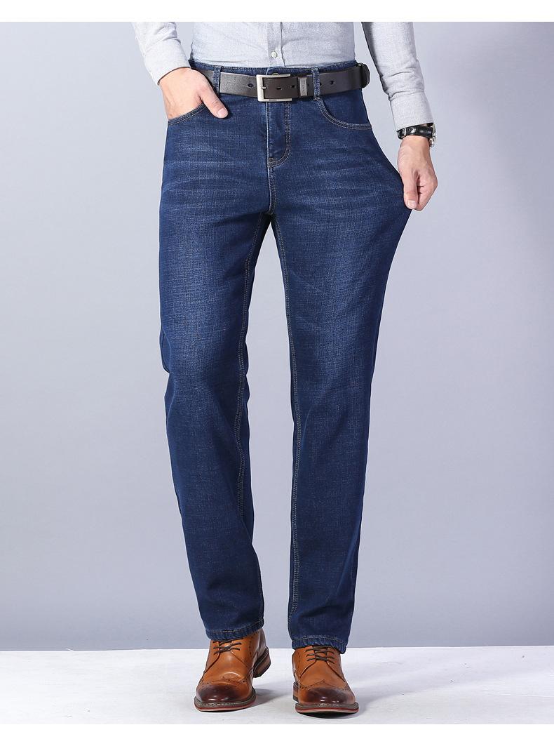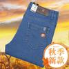 Calças jeans leves de alta qualidade para homens, calças de trabalho, outono e inverno, meia-idade e idosos, calças compridas elásticas, forradas com lã, espessadas, transfronteiriças