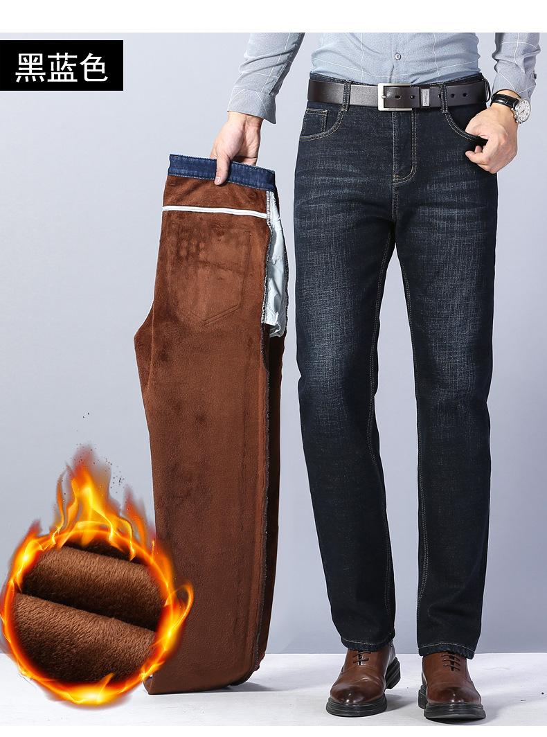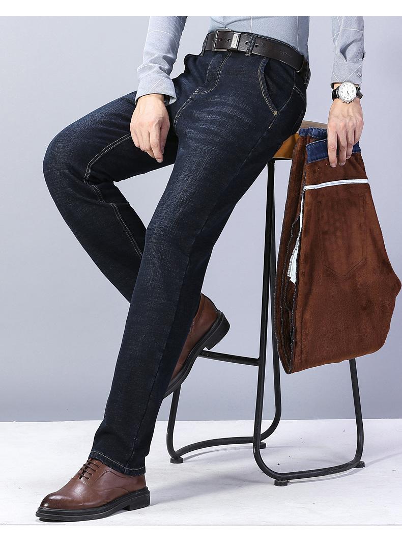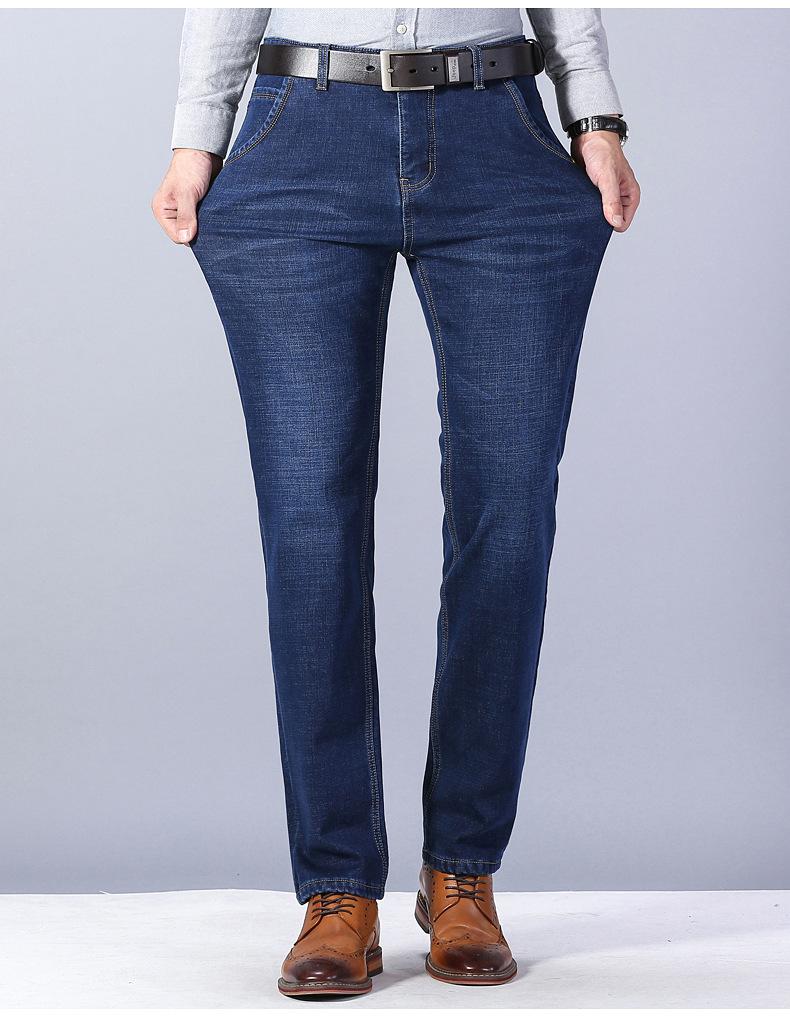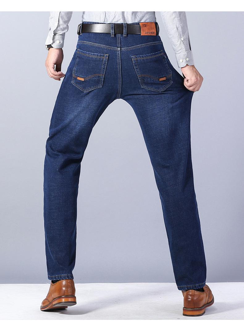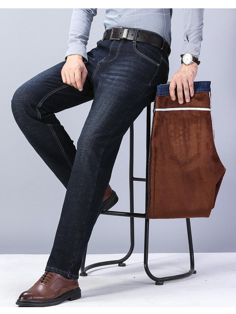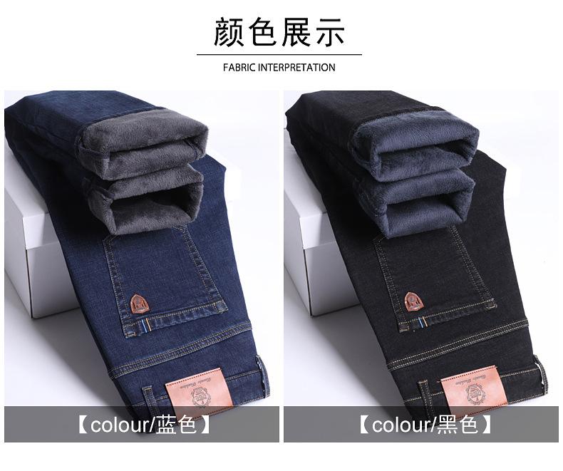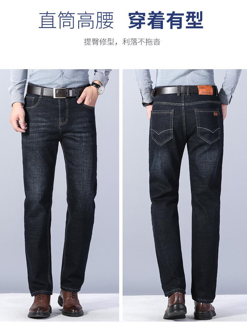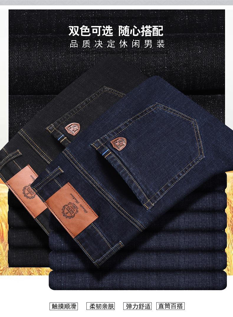 Calças jeans leves de alta qualidade para homens, calças de trabalho, outono e inverno, meia-idade e idosos, calças compridas elásticas, forradas com lã, espessadas, transfronteiriças