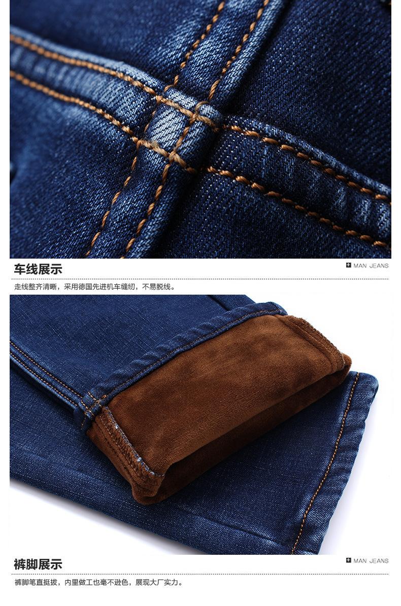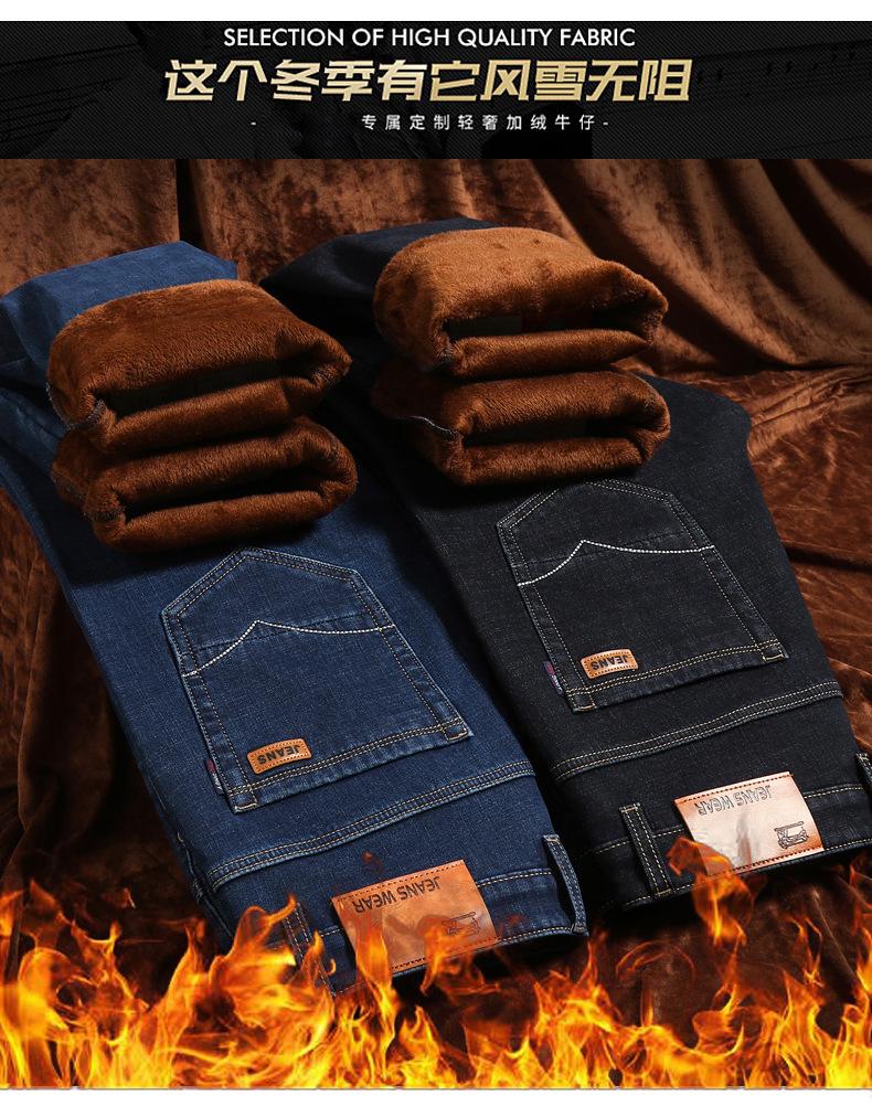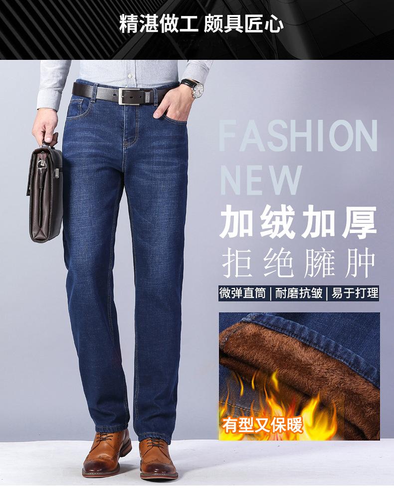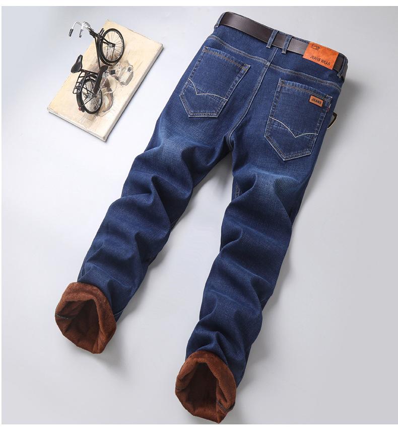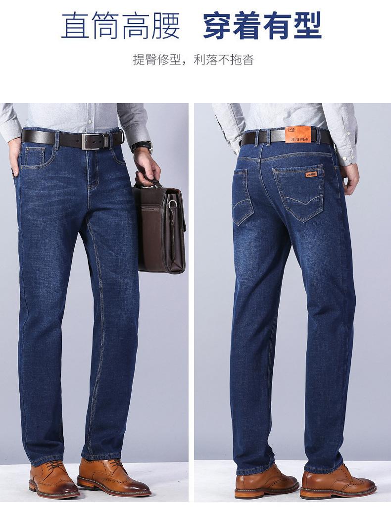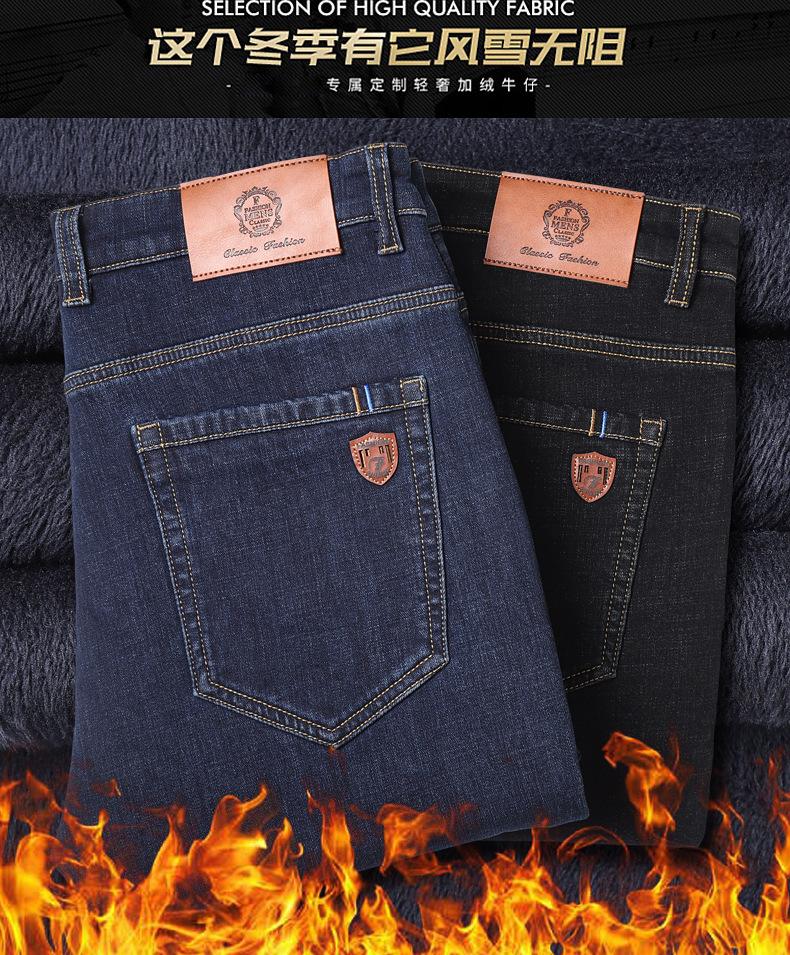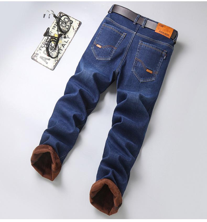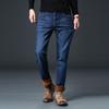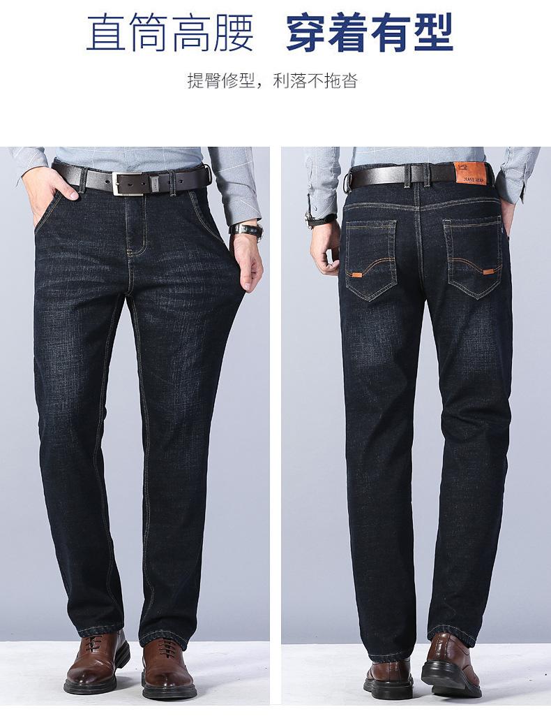 Calças jeans leves de alta qualidade para homens, calças de trabalho, outono e inverno, meia-idade e idosos, calças compridas elásticas, forradas com lã, espessadas, transfronteiriças