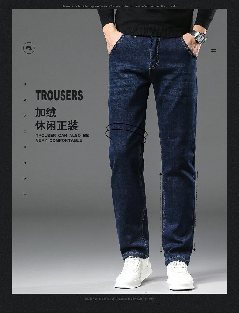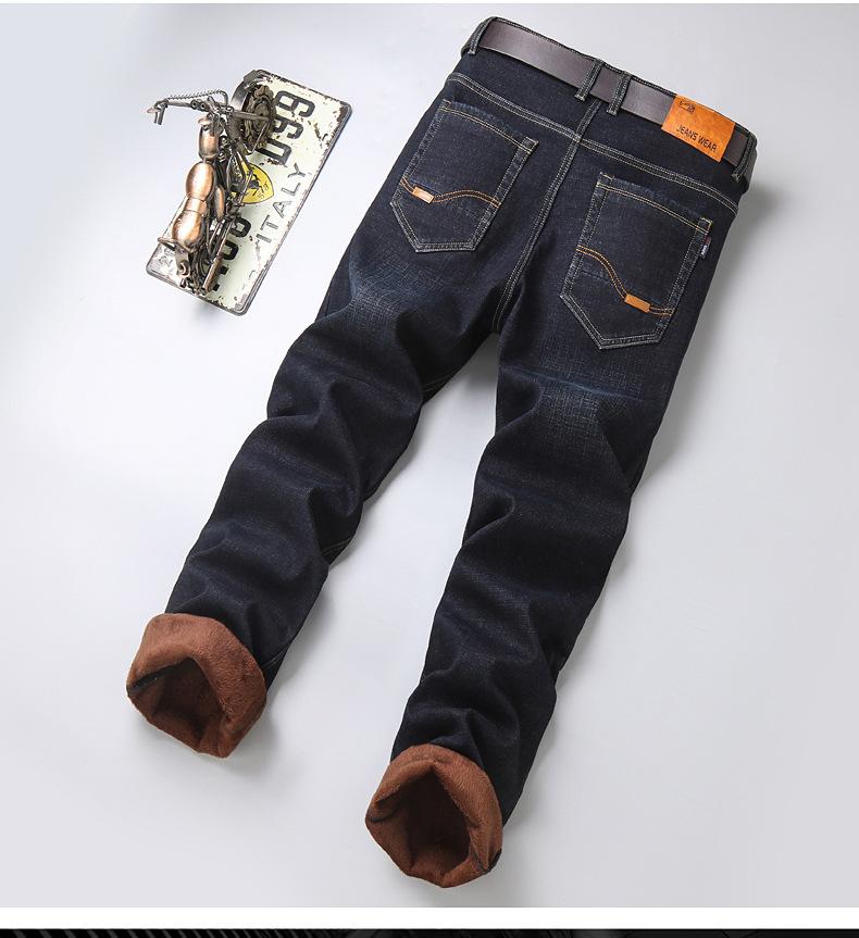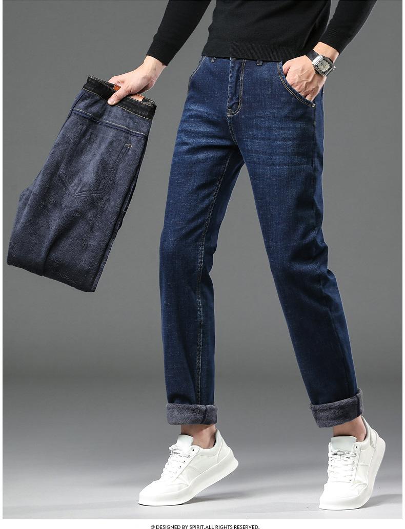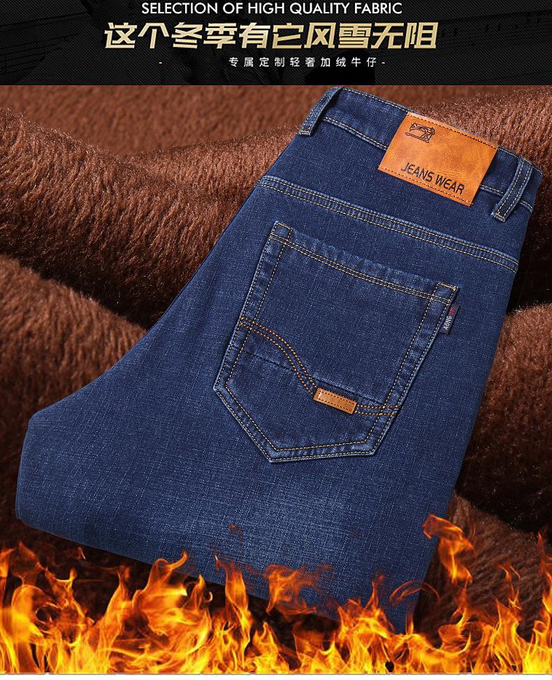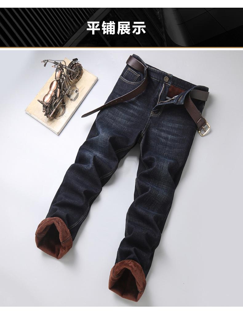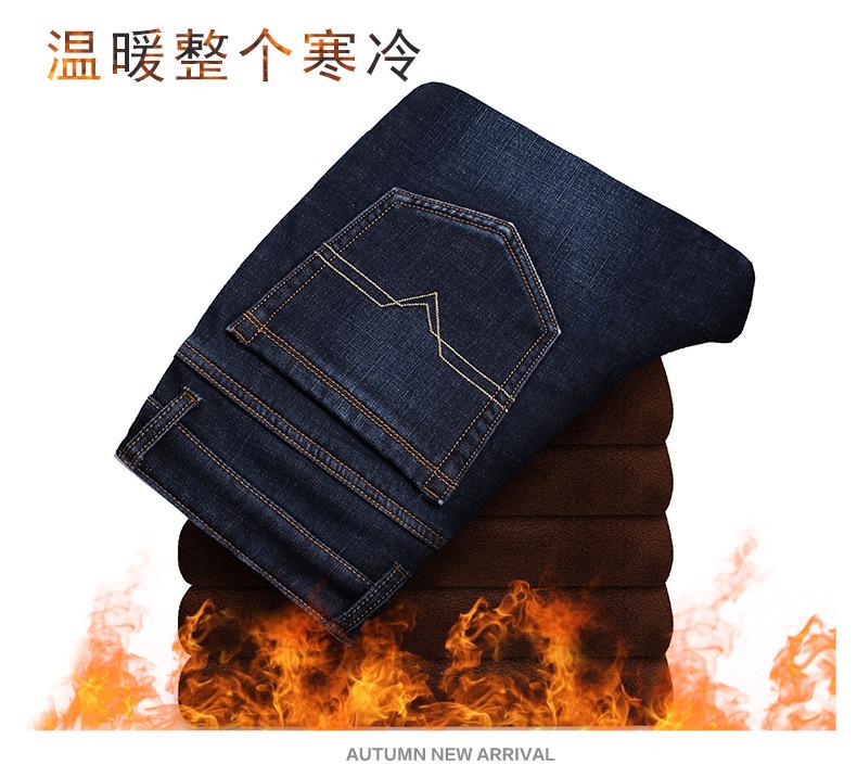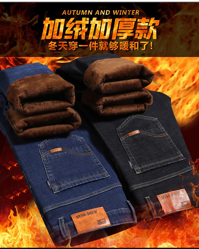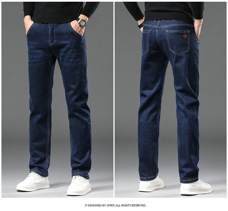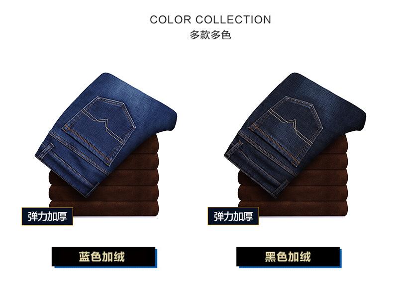 Calças jeans leves de alta qualidade para homens, calças de trabalho, outono e inverno, meia-idade e idosos, calças compridas elásticas, forradas com lã, espessadas, transfronteiriças