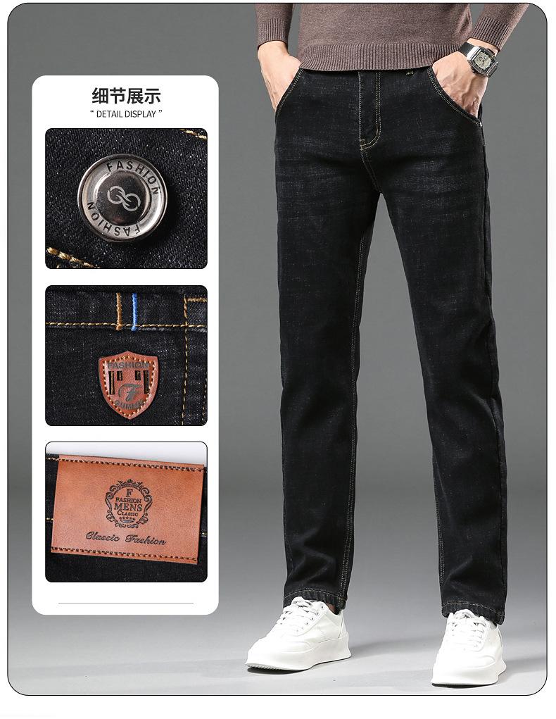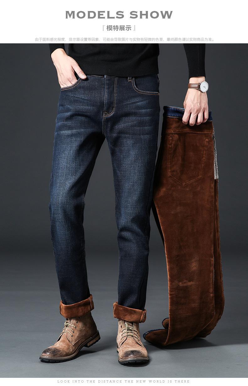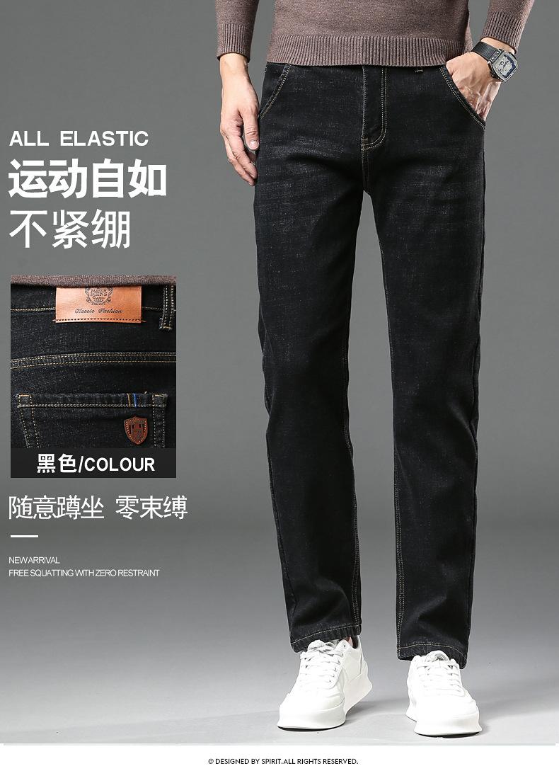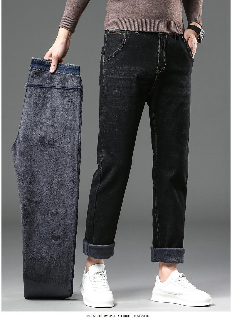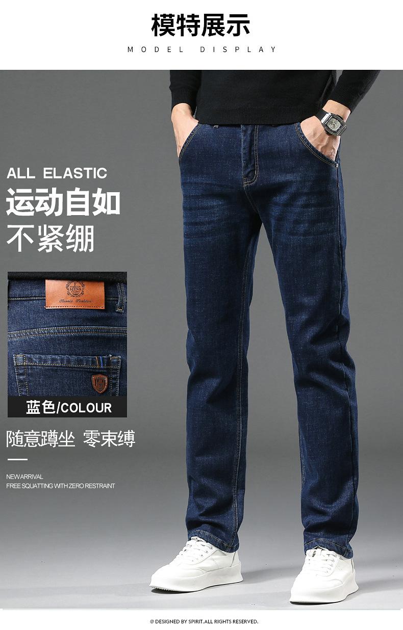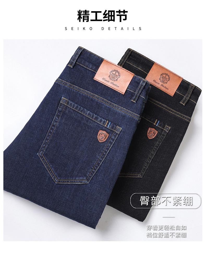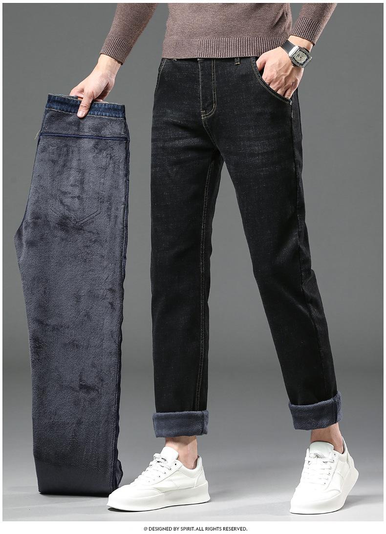Calças jeans leves de alta qualidade para homens, calças de trabalho, outono e inverno, meia-idade e idosos, calças compridas elásticas, forradas com lã, espessadas, transfronteiriças