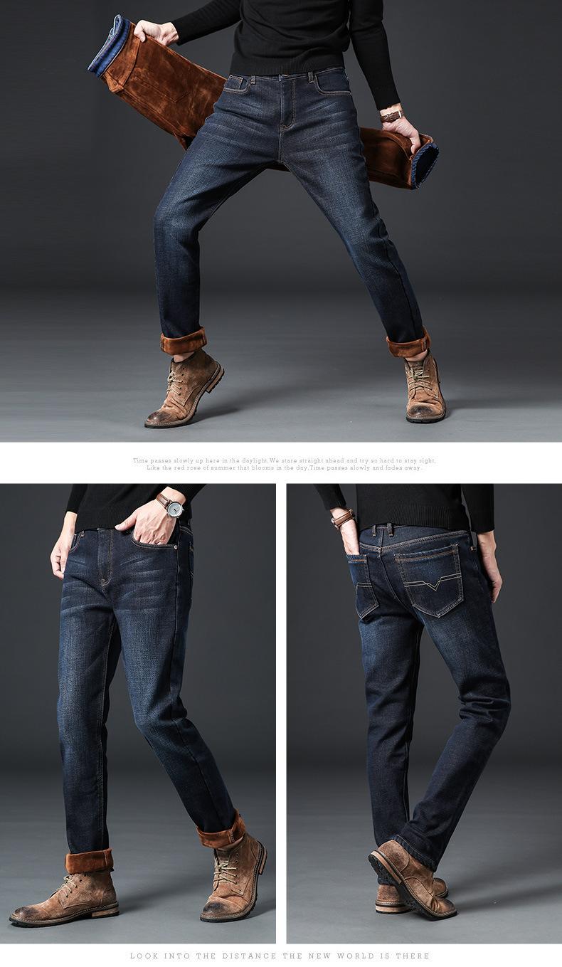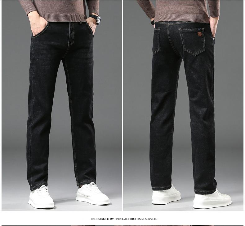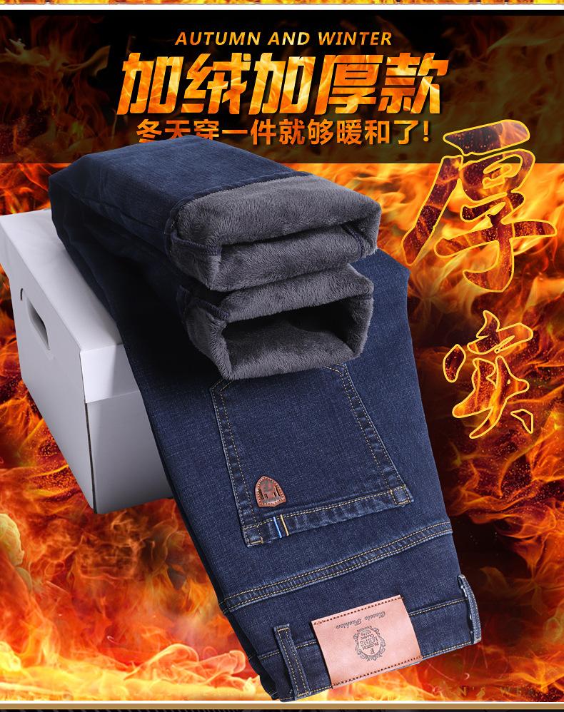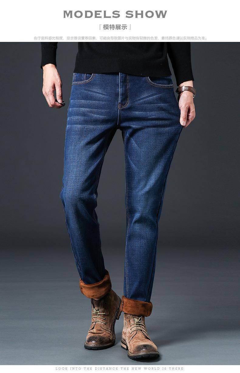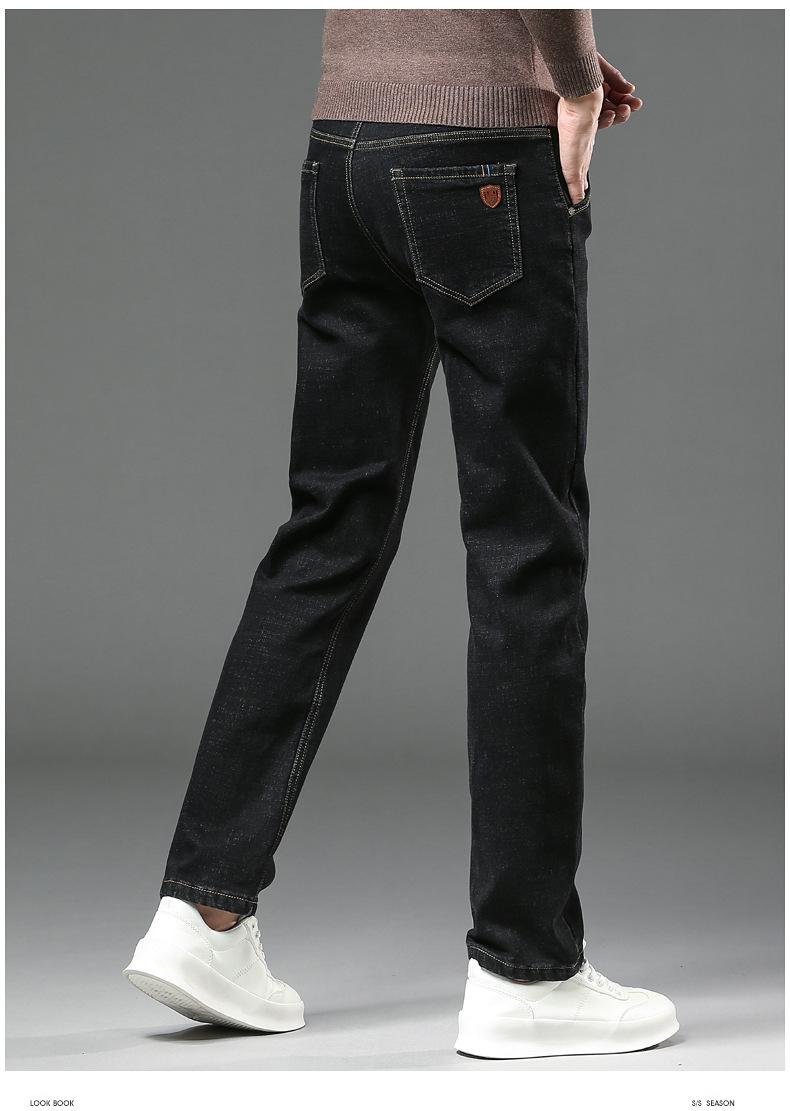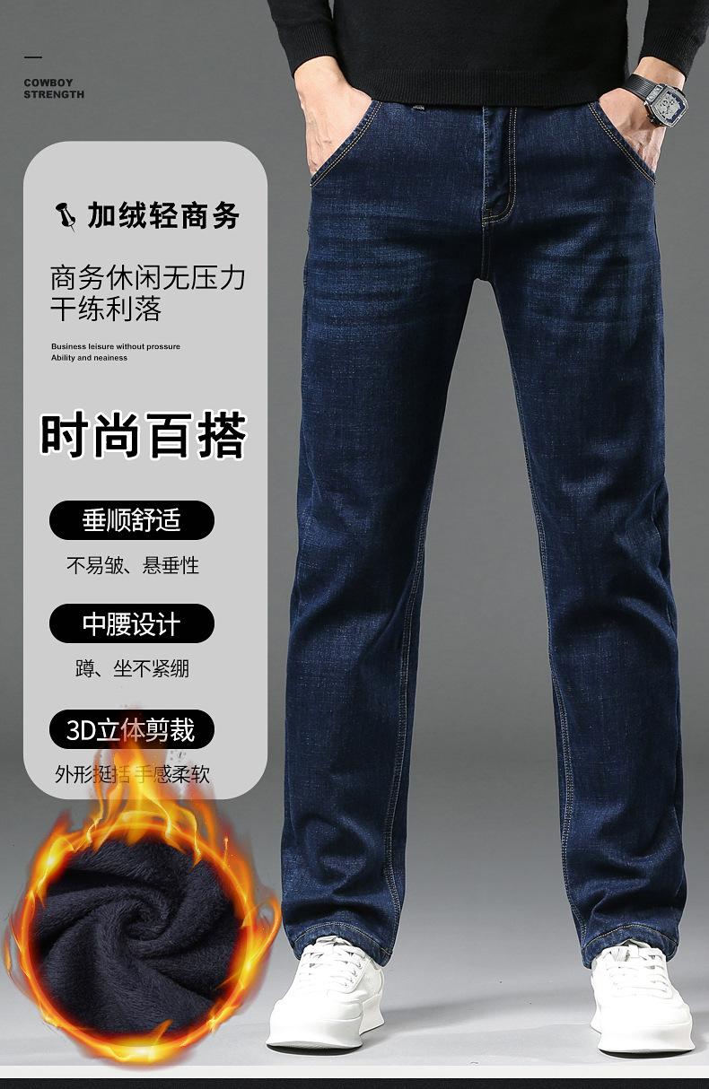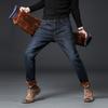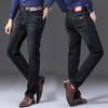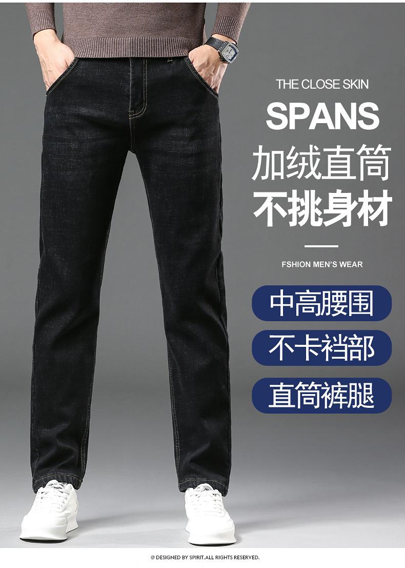 Calças jeans leves de alta qualidade para homens, calças de trabalho, outono e inverno, meia-idade e idosos, calças compridas elásticas, forradas com lã, espessadas, transfronteiriças