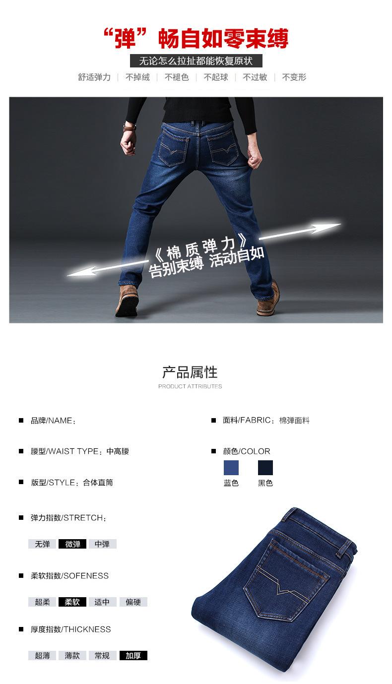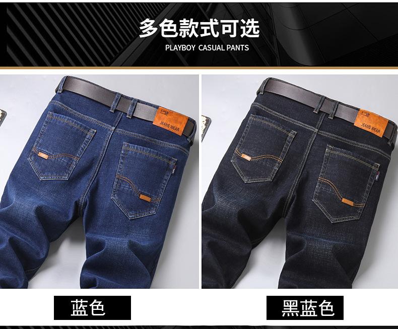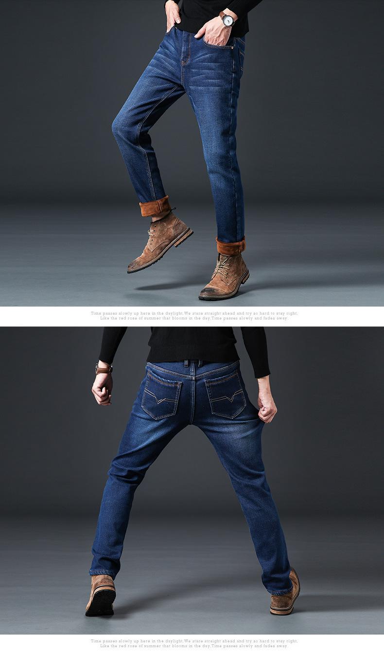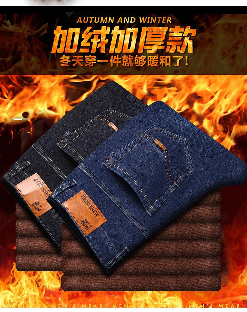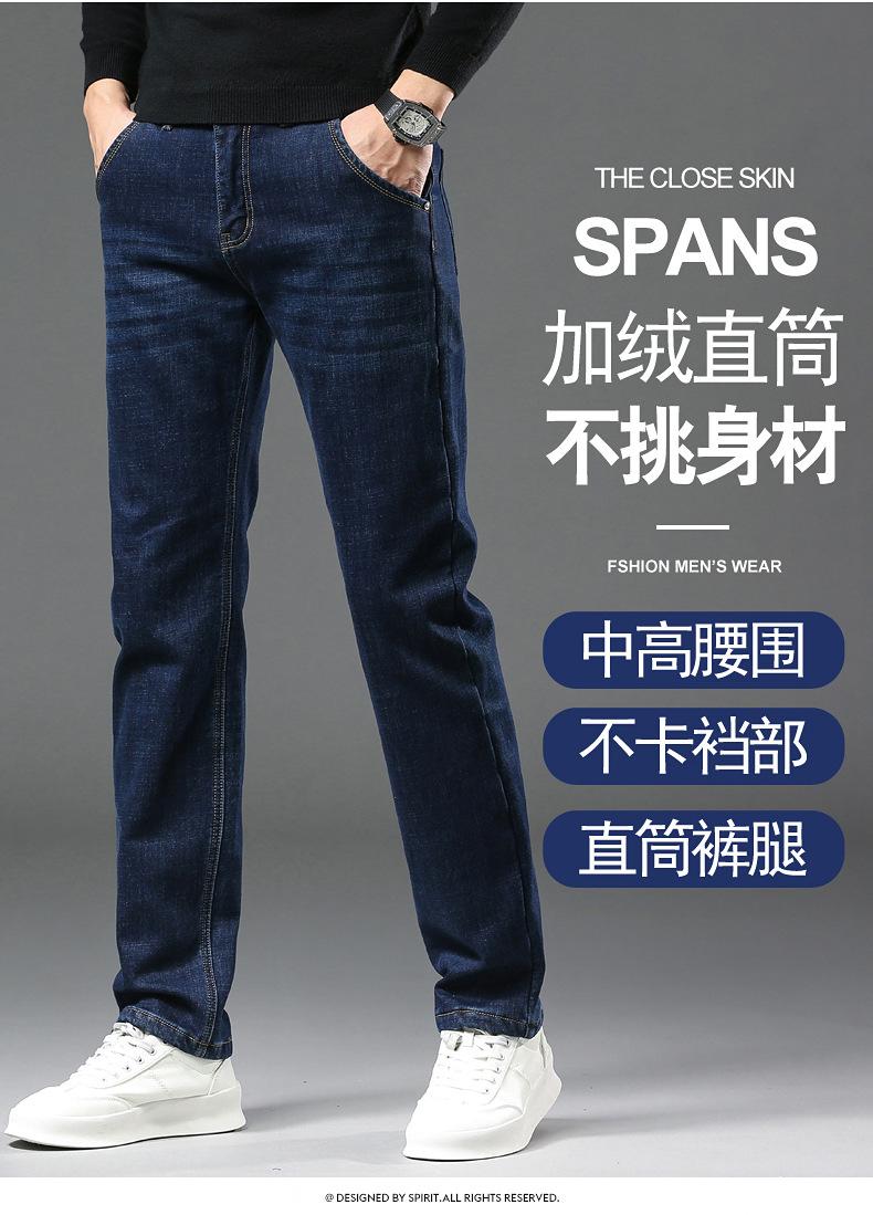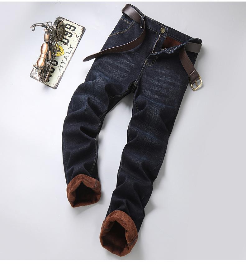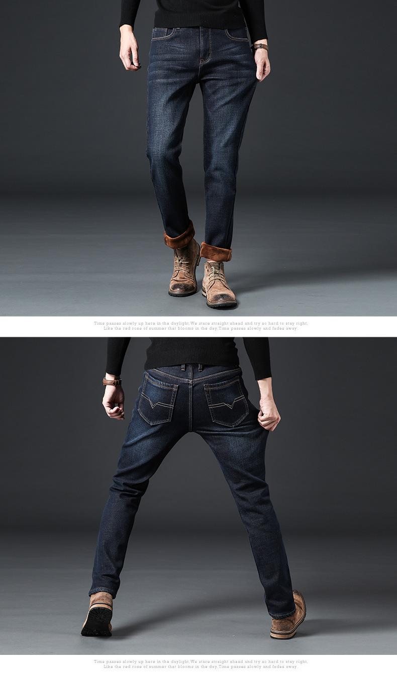 Calças jeans leves de alta qualidade para homens, calças de trabalho, outono e inverno, meia-idade e idosos, calças compridas elásticas, forradas com lã, espessadas, transfronteiriças