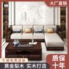 Nova combinação de sofá estilo chinês golden pear madeira madeira maciça moldura alta esponja rebote sofá de canto de quatro lugares