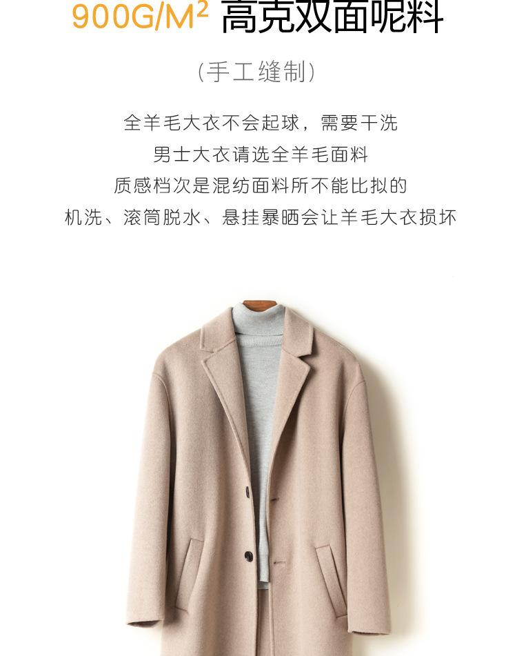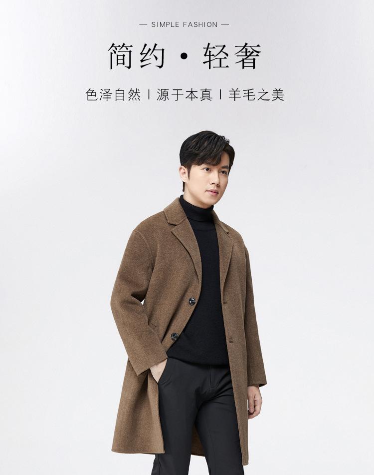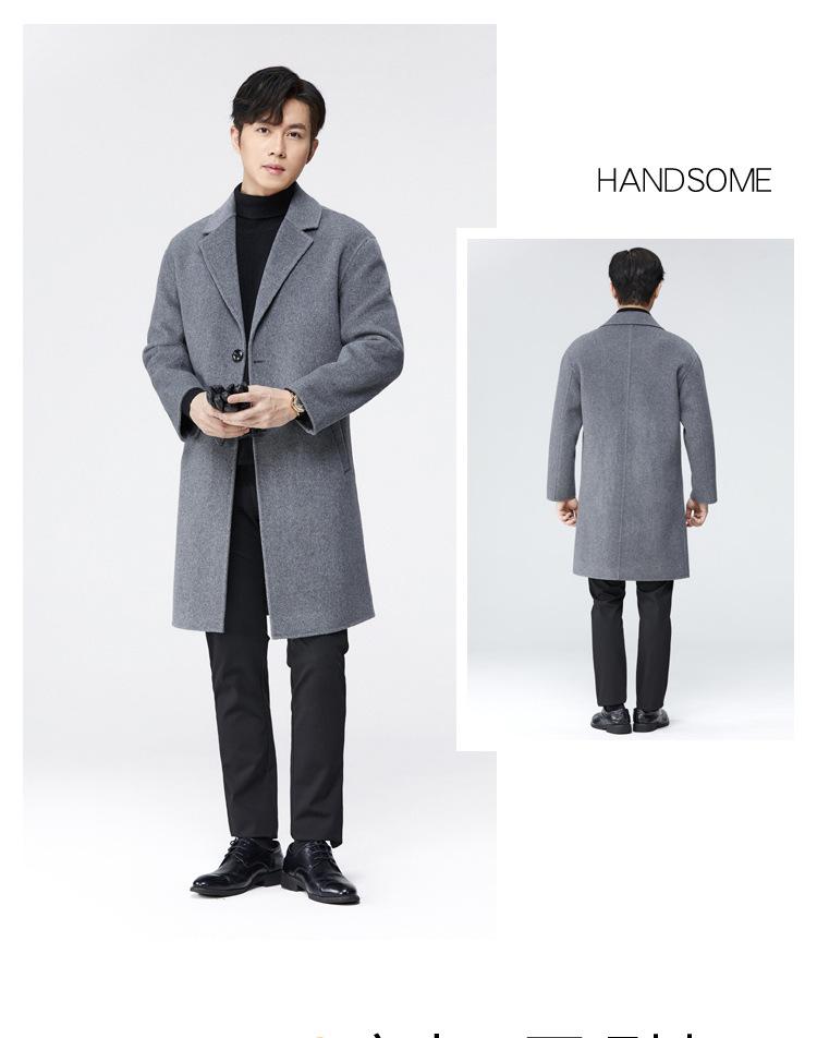 Outono e Inverno Dupla Face Não-caxemira Casaco Masculino de Comprimento Médio Solta Terno Ombro-queda Cor Sólida Casaco de Lã Casaco