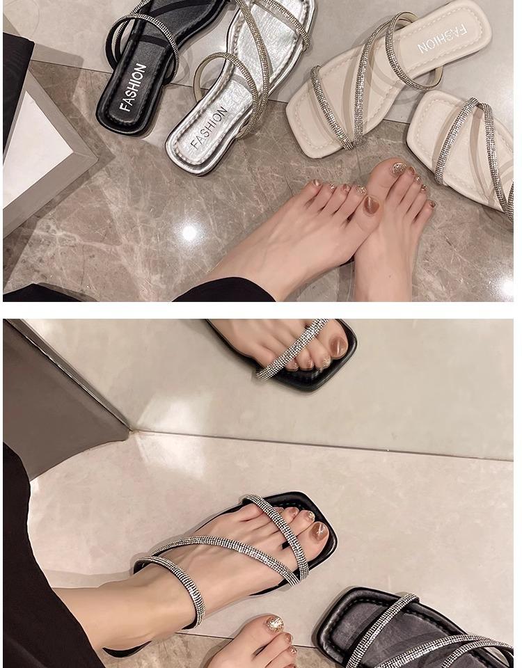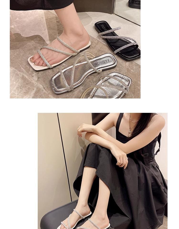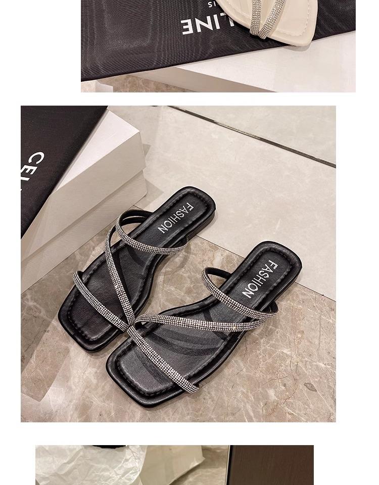 Chinelos femininos verão ao ar livre desgaste atacado nova moda Joker strass chinelos de fundo plano fada vento sandálias de praia