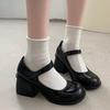2023 Primavera Novos Saltos Altos Mulheres Couro Genuíno Estilo Retro Universitário Sapatos de Salto Grosso Preto Bico Redondo Sapatos Mary Jane