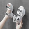 Sandálias Esportivas Mágicas de Fita Adesiva com Letras Tendência Verão 2026 para Estudantes Femininas, Sola Macia Plataforma Grossa Sandálias Dad