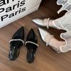 2623-3 Chinelos Meio Baotou Strass Prata Sapatos Mule Rasteiros Sandálias Roupa Exterior Feminina Pés Largos e Gordos Tamanho Grande Sapatos Femininos