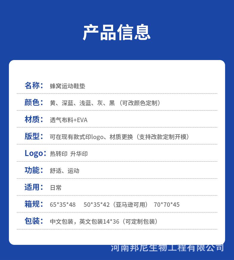 Palmilhas Oem Exportação Aumento de Altura Favo de Mel Respirável Confortável Suporte Esportivo Fabricante Processamento Absorção de Choque Logotipo Palmilha Inteira