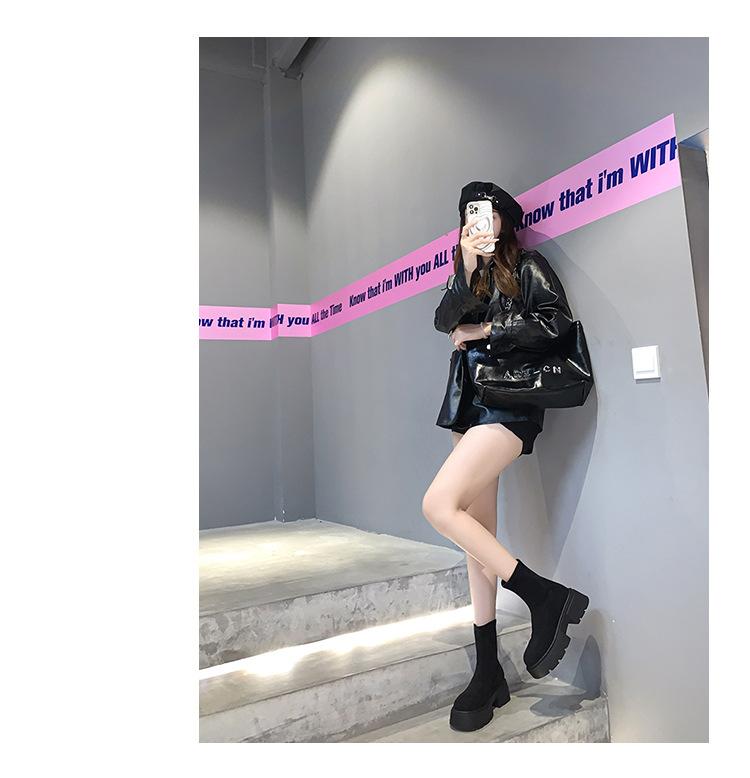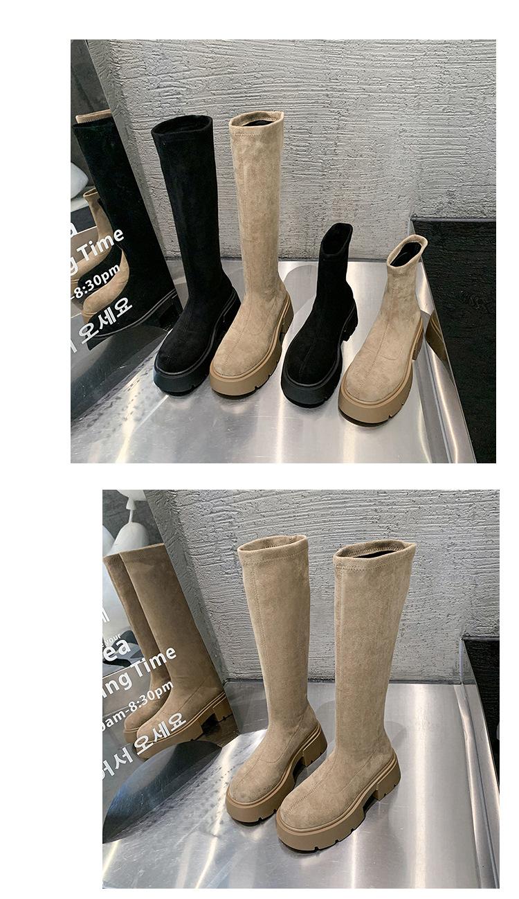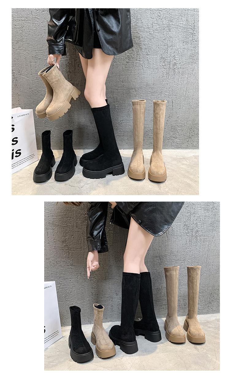 Botas Longas Femininas 2023 Outono Novo Estilo Britânico Vintage Moda Elástica Slim Botas Altas Versátil e Estilosa
