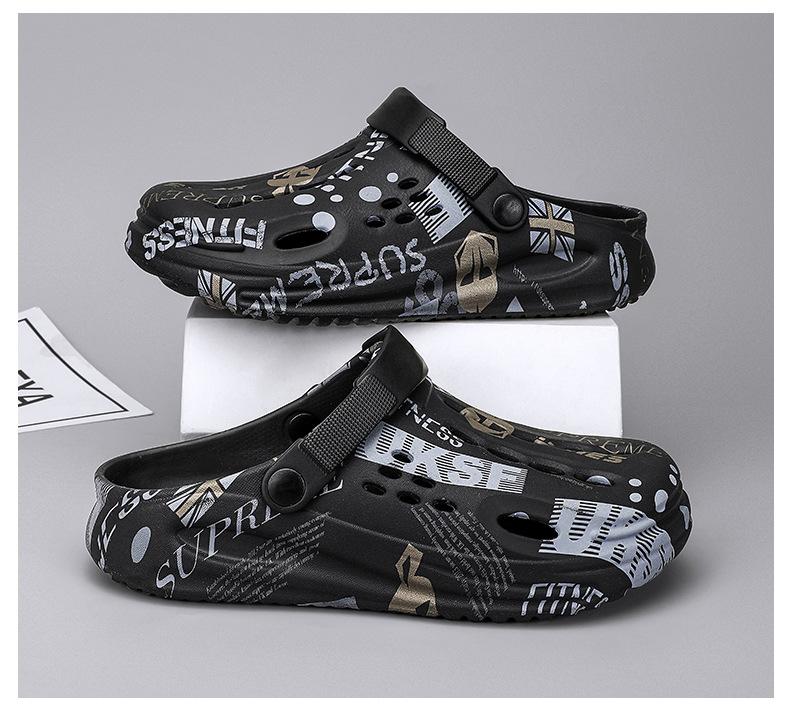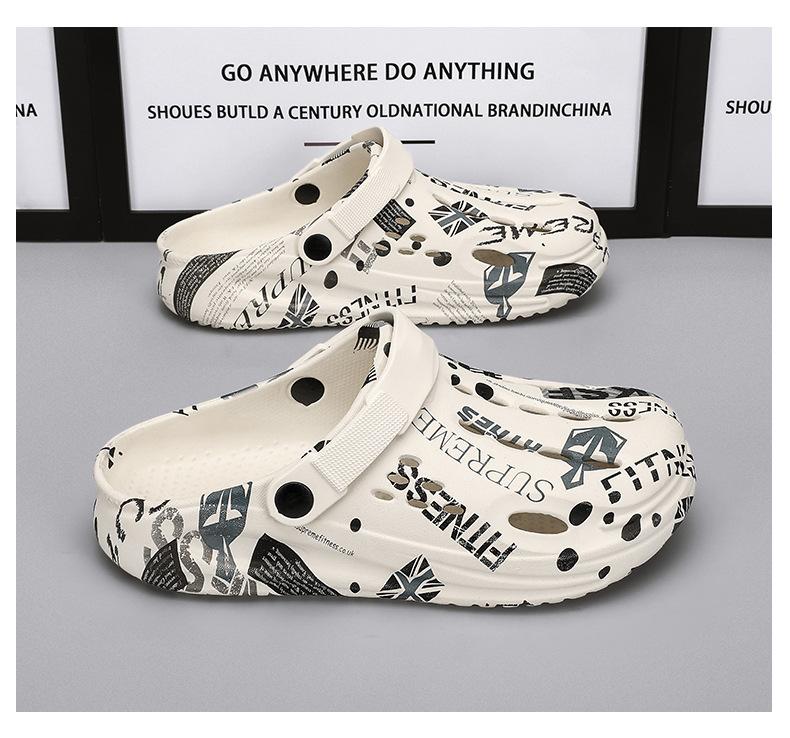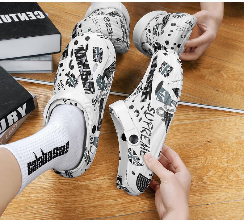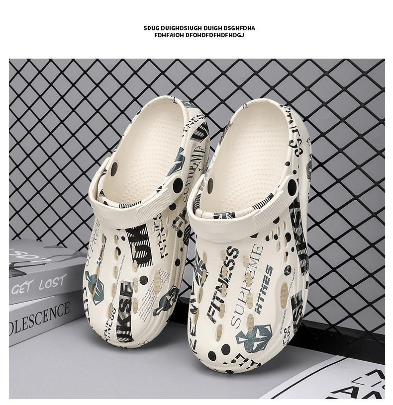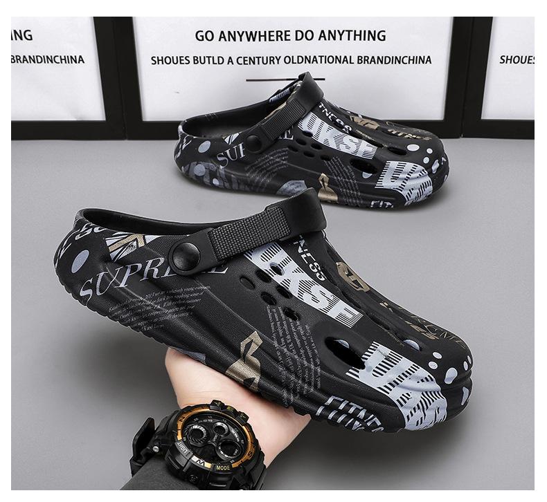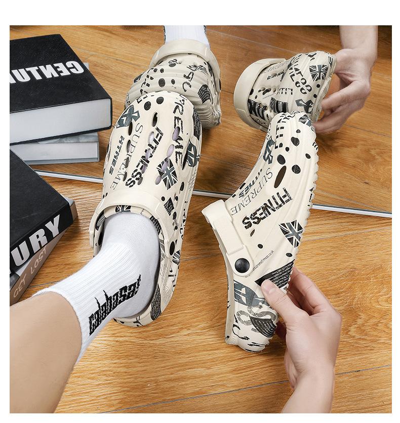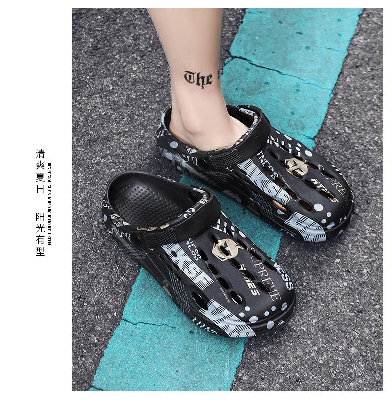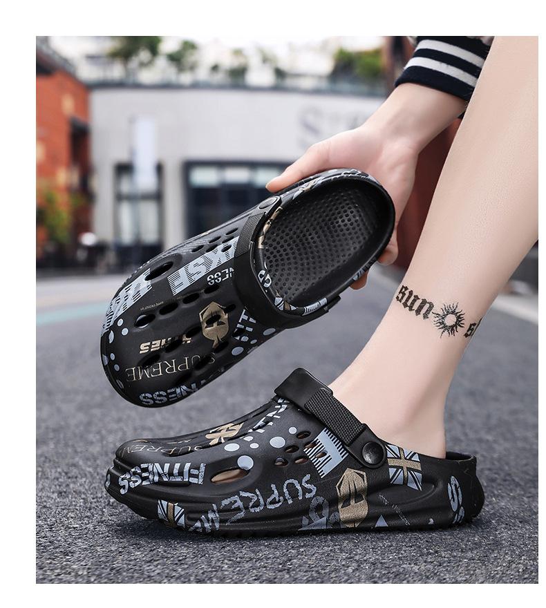 Sapatos de buraco de tamanho grande para homens verão personalizado sandálias respiráveis casa non-slip Baotou chinelos moda ao ar livre Wading sapatos de praia