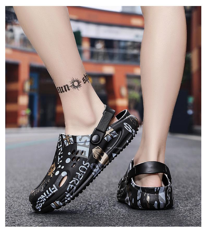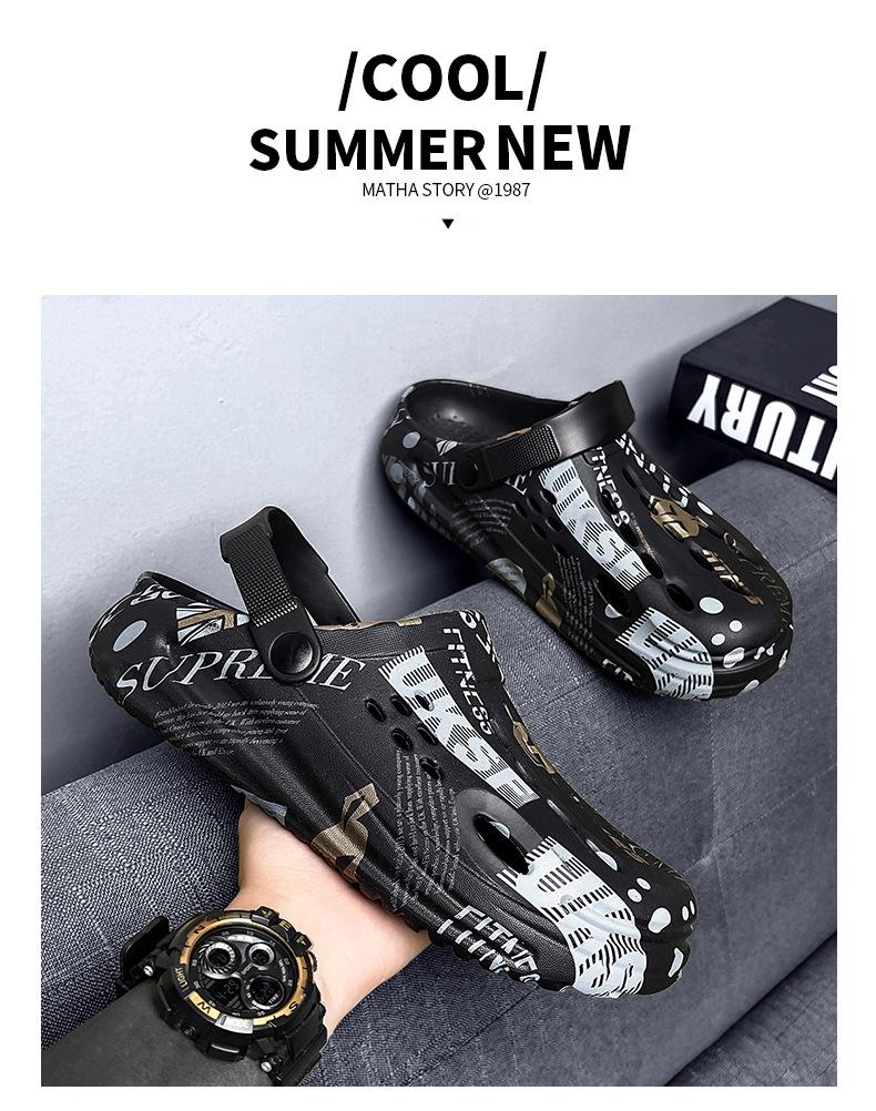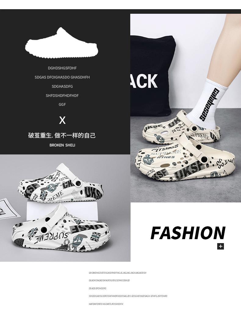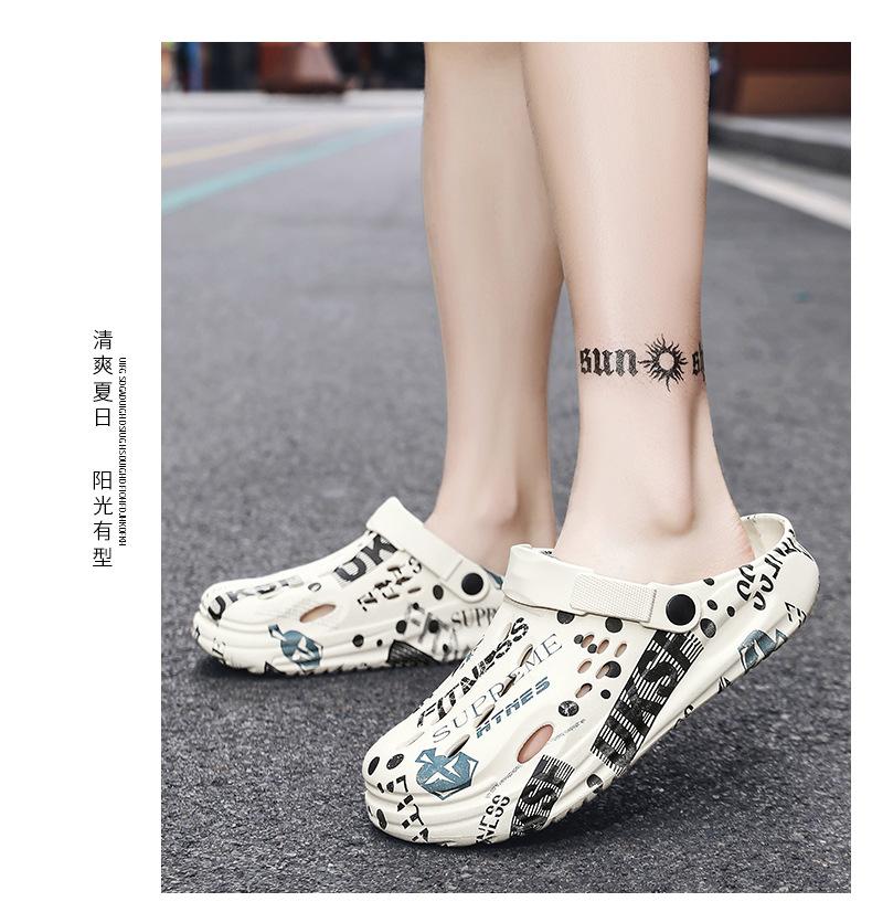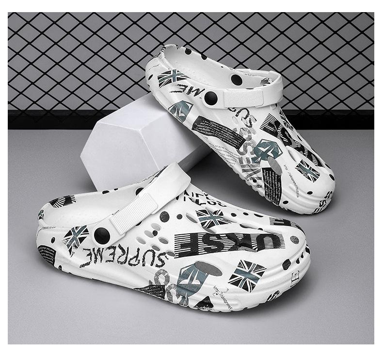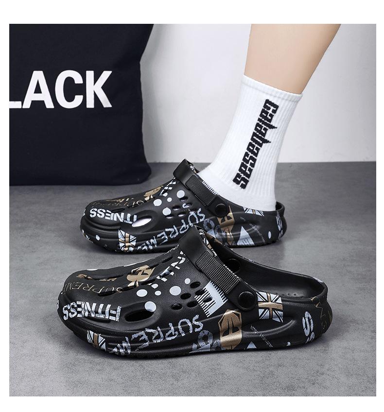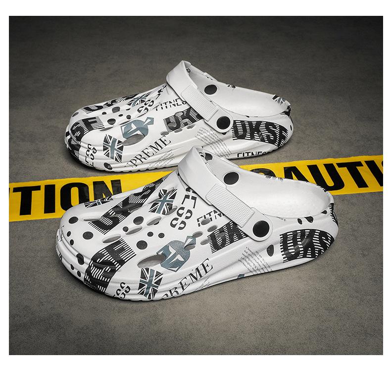 Sapatos de buraco de tamanho grande para homens verão personalizado sandálias respiráveis casa non-slip Baotou chinelos moda ao ar livre Wading sapatos de praia